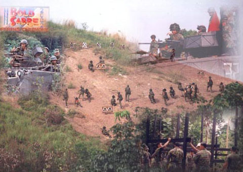 Exercise 'BOLD SABRE' is a training exercise which was held for the first time in 1992 involving the Armoured Recce Squadron, Royal Brunei Land Forces and the 42nd Singapore Armoured Regime.