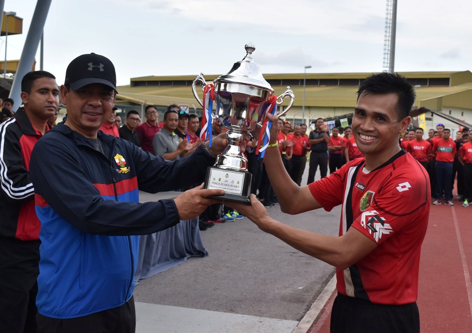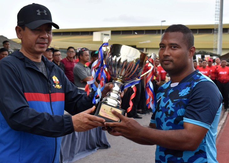 The RBLF team emerged victorious today as the winners and recipients of the RBAF Football League 2019 Champions’ Trophy. The prizes were presented by the Guest of Honour, with further awards for Best Player presented to Lans Corporal Amir Azmal bin Mohd Tahir from RBAirF, Top Scorer to Captain Mohd Alif bin Haji Zulkifli from RBAirF and Best Goalkeeper to Lans Corporal Herme bin Panjang from RBAirF.