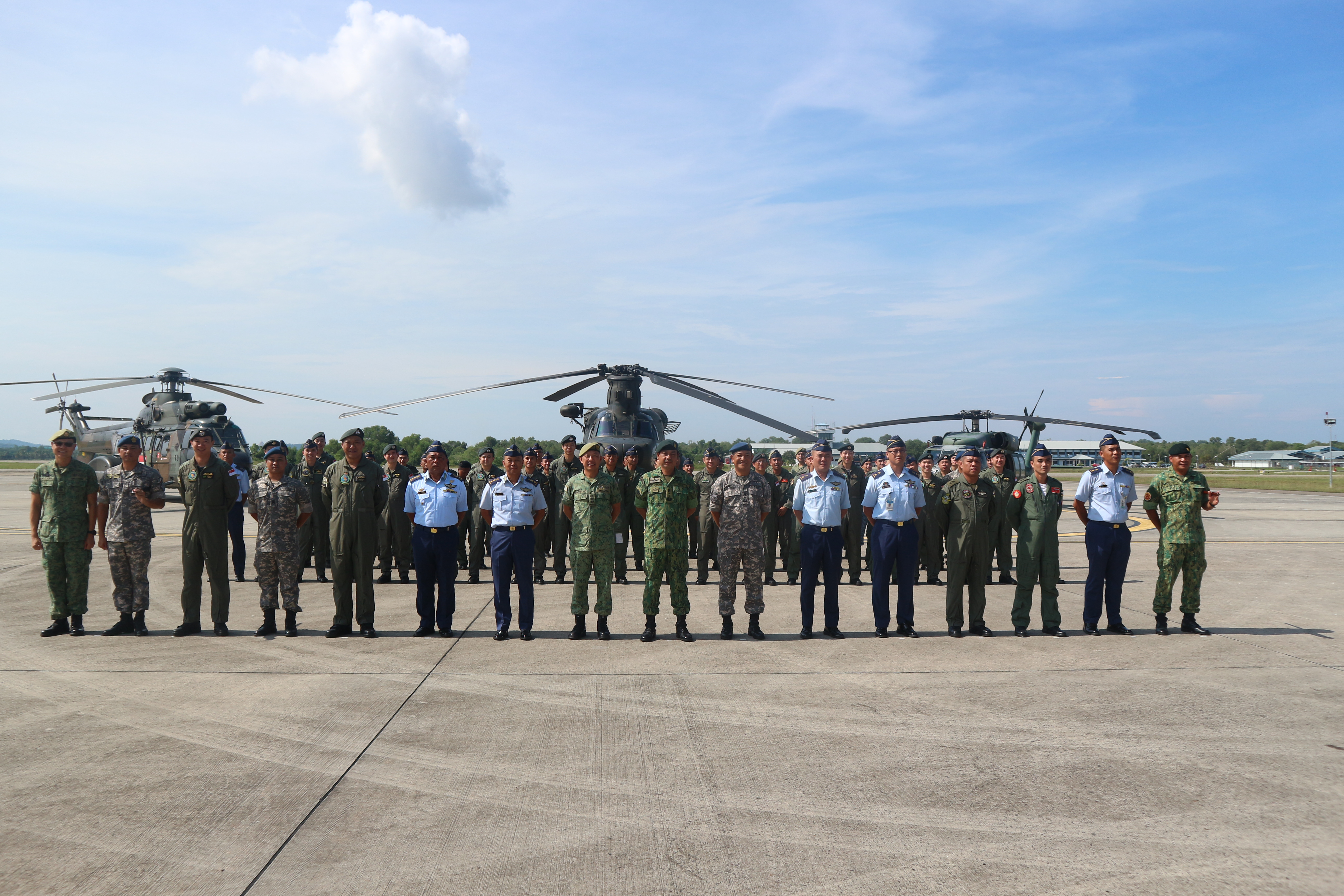 RIMBA AIR FORCE BASE, Thursday 31 October 2019 - The Republic of Singapore Air Force, Defence Attache Colonel Yeo Joon Hua Desmond recently organized a Static Display of Helicopters from RSAF & RBAirF, at the Air Movement Center, Royal Brunei Air Force.