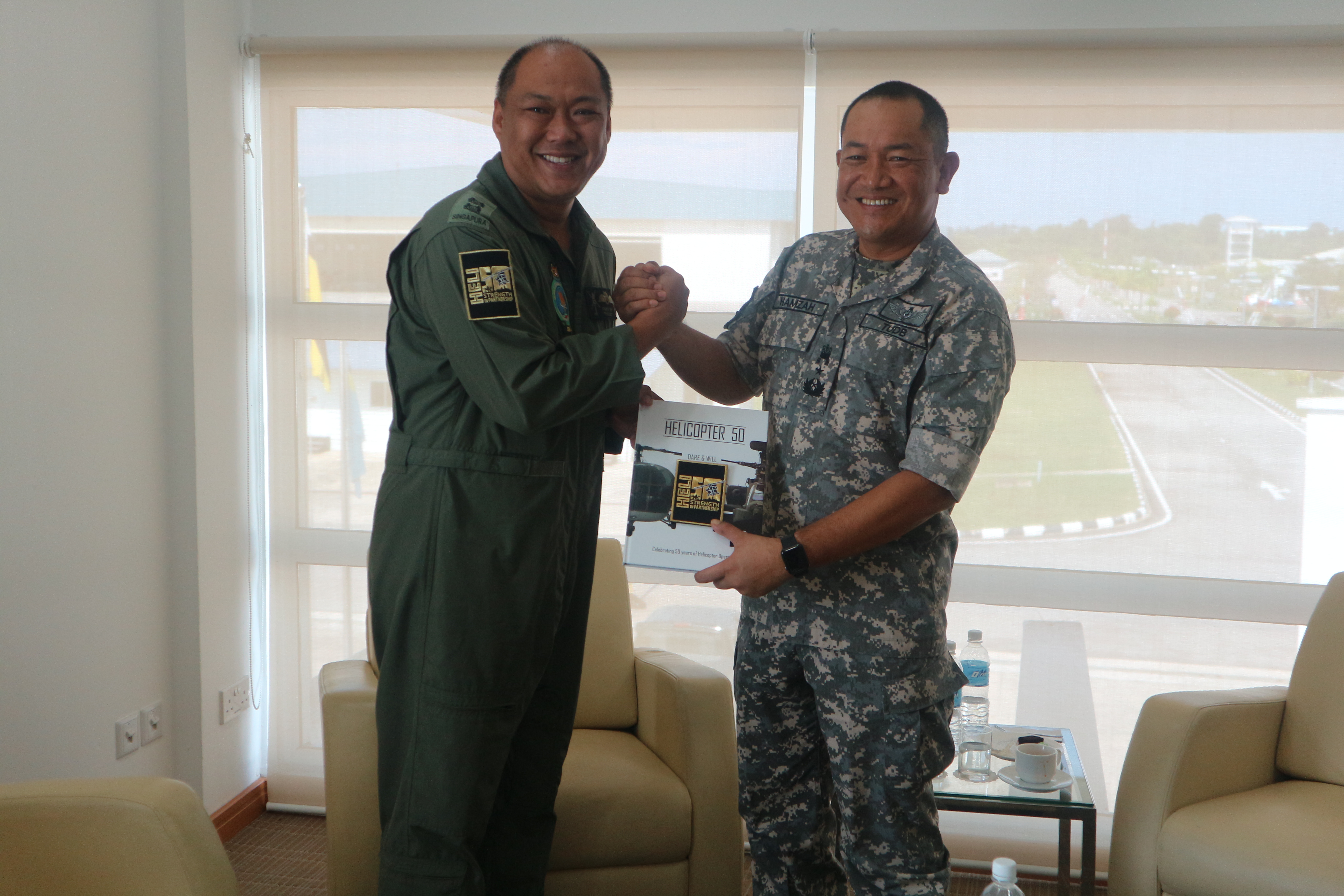 Present as Guest of Honor was Major General Pengiran Dato Paduka Seri Aminan bin Pengiran Haji Mahmud, the Royal Brunei Armed Forces Commander and Brigadier General (U) Dato Seri Pahlawan Haji Hamzah bin Haji Sahat, the Royal Brunei Air Force Commander. Greeted at the venue by the Defence Attache of Singapore and aircrew of Helicopter Detachment Team RSAF from Jalan Aman camp, Chinook aircrew from the RSAF as well as the Royal Brunei Air Force helicopter crew.