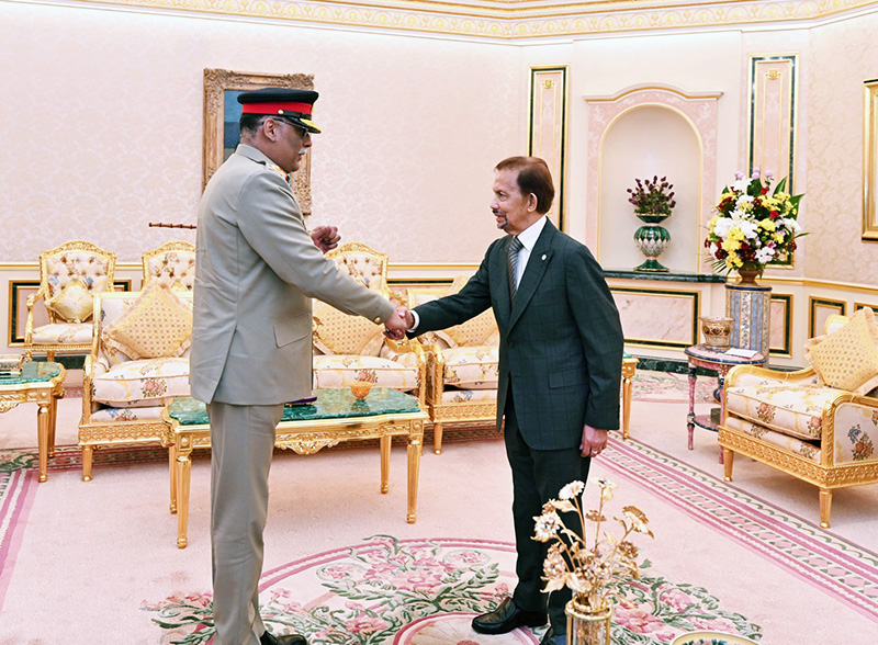 Istana Nurul Iman, Wednesday, 05 November 2025 - His Majesty Sultan Haji Hassanal Bolkiah Mu'izzaddin Waddaulah ibni Al-Marhum Sultan Haji Omar 'Ali Saifuddien Sa'adul Khairi Waddien, Sultan and Yang Di-Pertuan of Brunei Darussalam, today received in audience His Excellency General Sahir Shamshad Mirza, Chairman Joint Chiefs of Staff Committee (CJCSC), Pakistan Armed Forces. The Audience ceremony took place at Istana Nurul Iman.