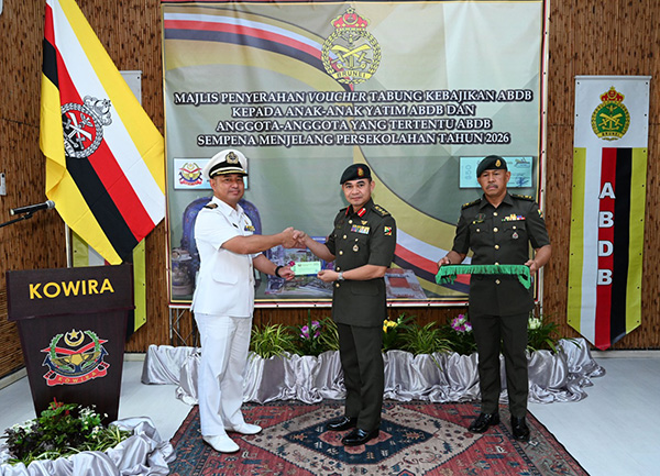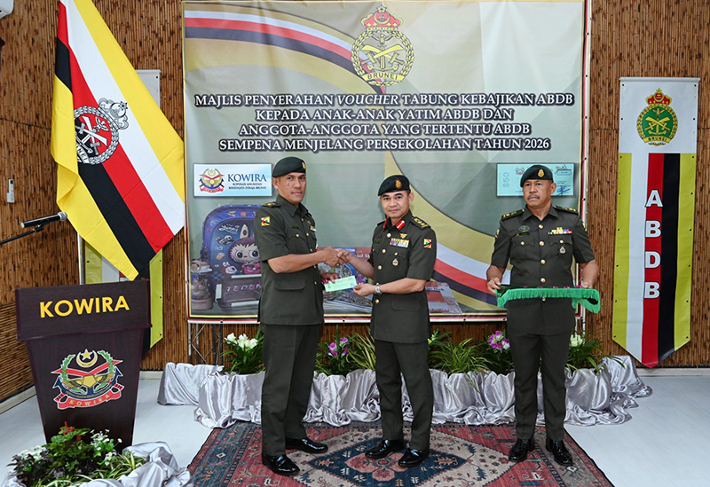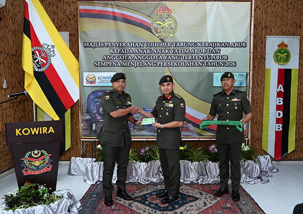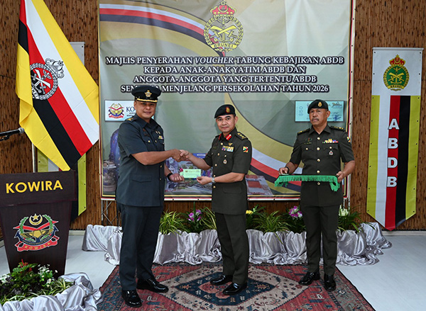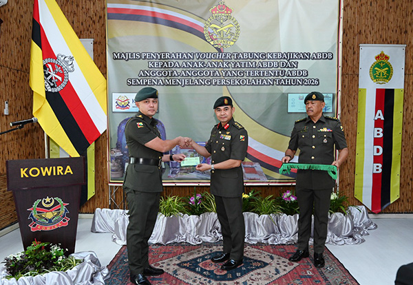 BERAKAS GARISON, Jumaat, 5 Disember 2025 – Angkatan Bersenjata Diraja Brunei (ABDB) telah berkesempatan melaksanakan Majlis Penyerahan Voucher Tabung Kebajikan (TK) ABDB kepada anak-anak yatim ABDB dan anggota-anggota yang tertentu ABDB sempena menjelang persekolahan tahun 2026. Seramai 111 orang anak-anak yatim ABDB dan 701 anggota-anggota yang tertentu ABDB menerima voucher TK ABDB yang keseluruhannya berjumlah sebanyak $106,650.00. Penyerahan voucher TK ABDB telah diadakan di Koperasi Angkatan Bersenjata Diraja Brunei Dengan Tanggungan Berhad (KOWIRA), Berakas Garison.