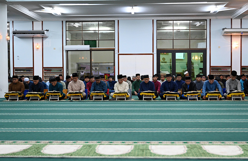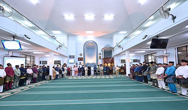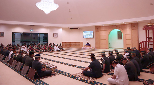 His Majesty Sultan Haji Hassanal Bolkiah Mu'izzaddin Waddaulah ibni Al-Marhum Sultan Haji Omar 'Ali Saifuddien Sa'adul Khairi Waddien, Sultan and Yang Di-Pertuan of Brunei Darussalam led by Yang Mulia Imam Pengiran Haji Muhammad Hafizuddin bin Pengiran Haji Bakar, Chief Imam of