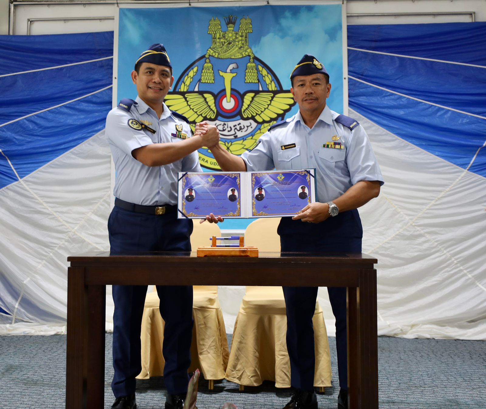 The guest of honor during the ceremony was Warrant Officer 1 (U) Suziman bin Sabli, Acting Sergeant Major of RBAirF. The highlight of the event was the Signing of the Handing over Certificate marking the official handing over of the President Mess Committee of the RBAirF SNCOs Mess between Warrant Officer 1 (U) Mohd Yusmiee bin Ali and Warrant Officer 1 (U) Mohd Hassanudin bin Hj Md Arshad, who will be taking over the President Mess Committee of the RBAirF SNCOs Mess 2023/24.