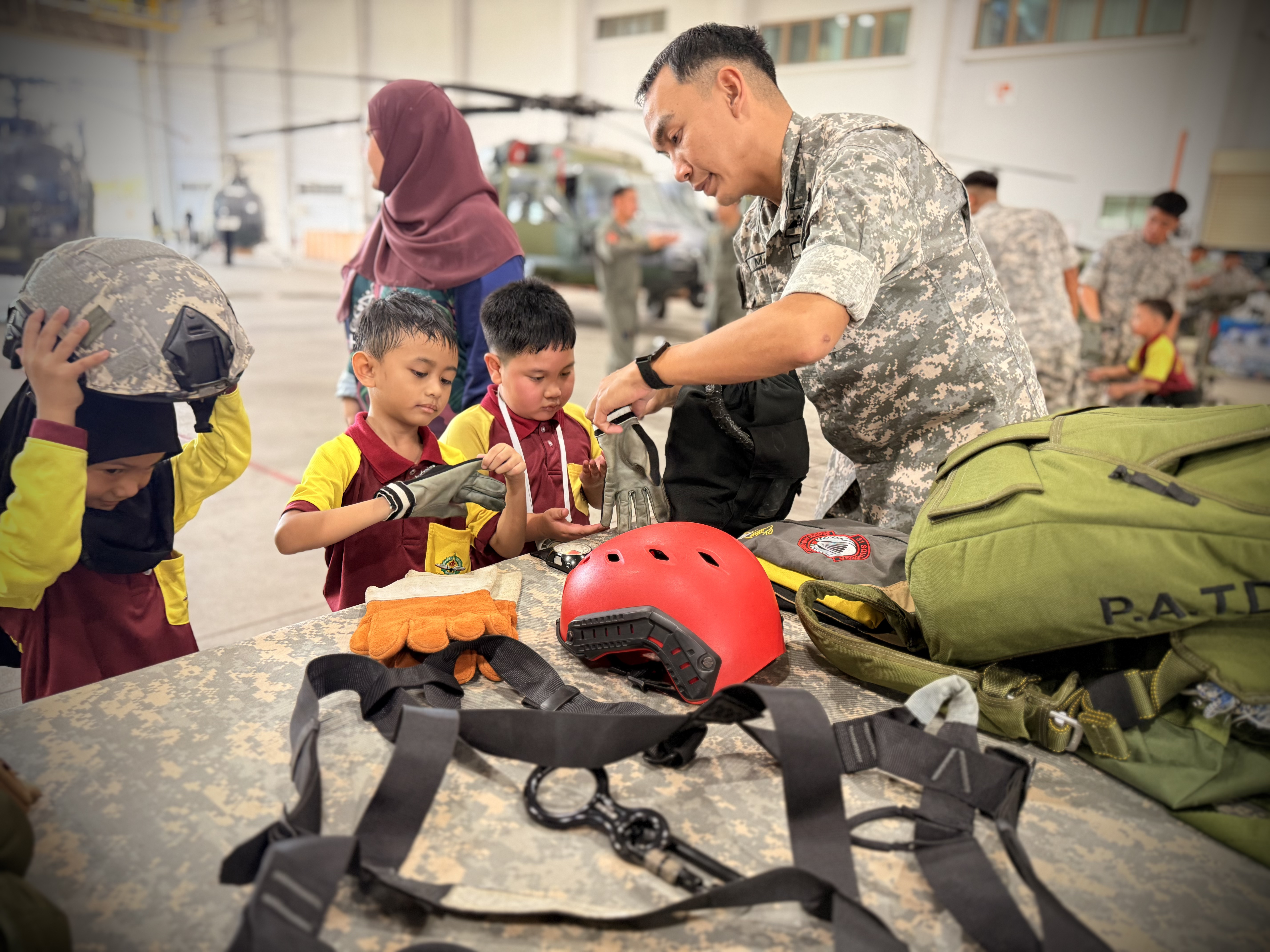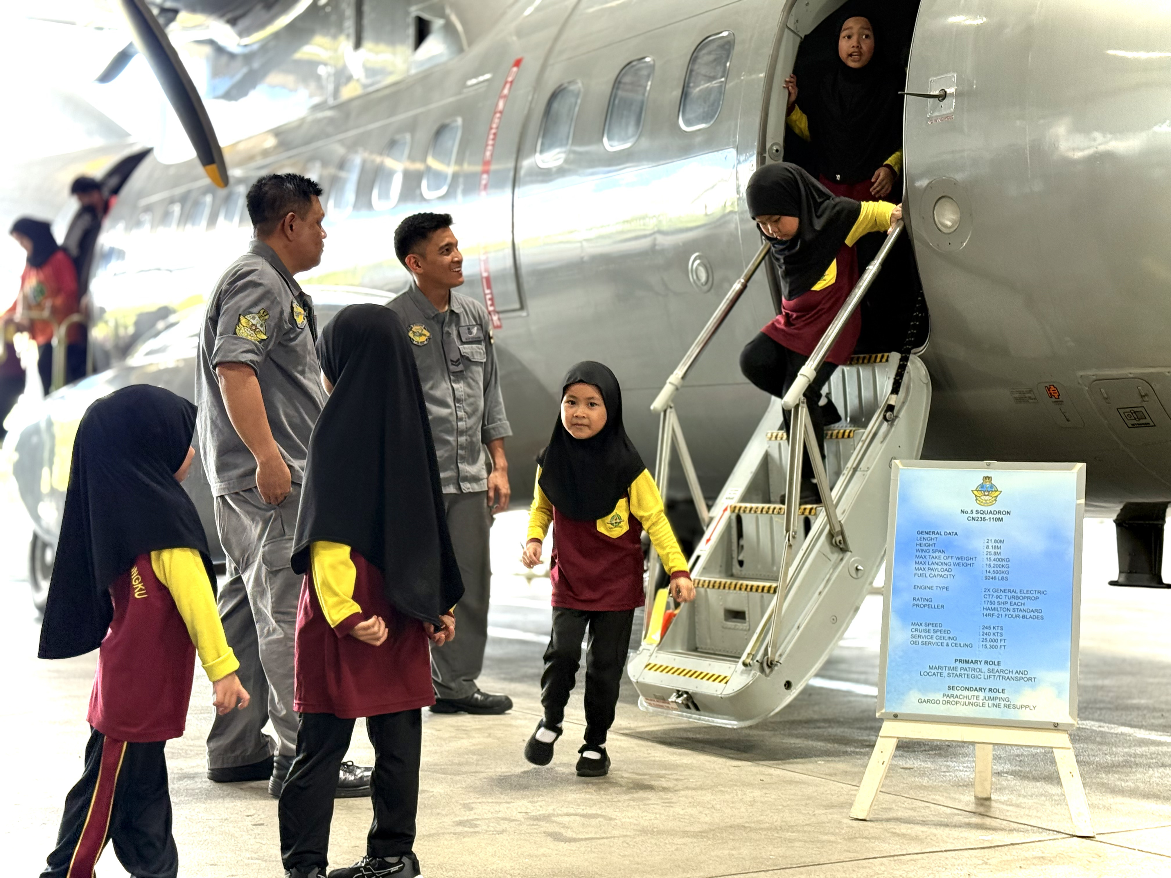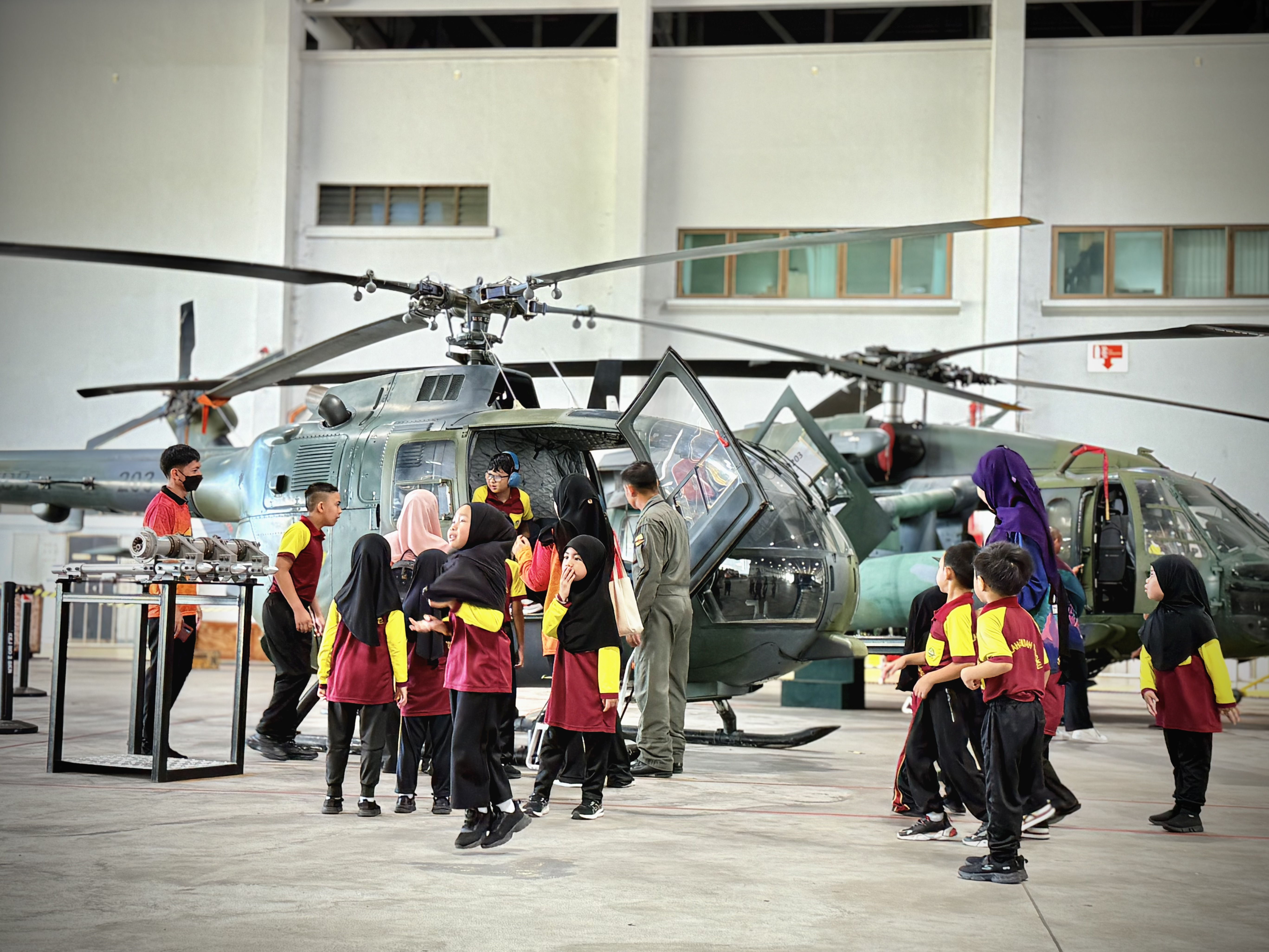 The group was welcomed and briefed by Warrant Officer 2 (U) Hj Meas Maddi bin Hj Awg Mohamad from No. 4 Wing, Support Group, who introduced them to RBAirF and guided them on a tour to the static display showcasing the assets and equipment used by the RBAirF. The visit also includes activities for the students, enabling them to interact with RBAirF personnel and gain hands-on experience with the assets.