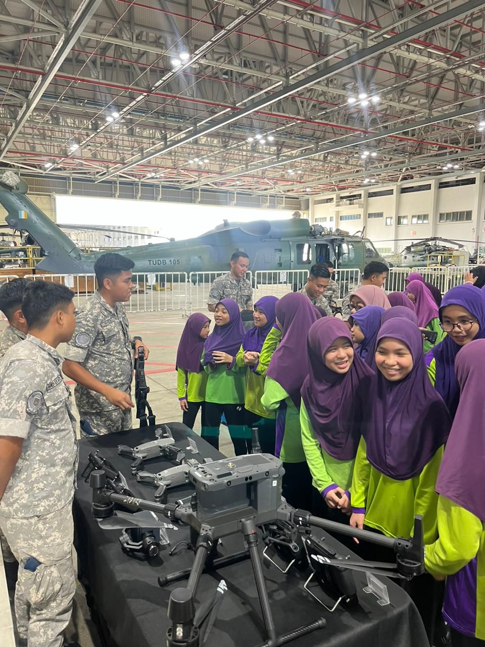 Throughout the visit, the students interacted with RBAirF personnel and had the opportunity to experience some of the equipment on display. The educational visit aimed to enhance students' understanding of the RBAirF's responsibilities while fostering interest, curiosity, and patriotism among the younger generation to one day serve in the Royal Brunei Armed Forces (RBAF).