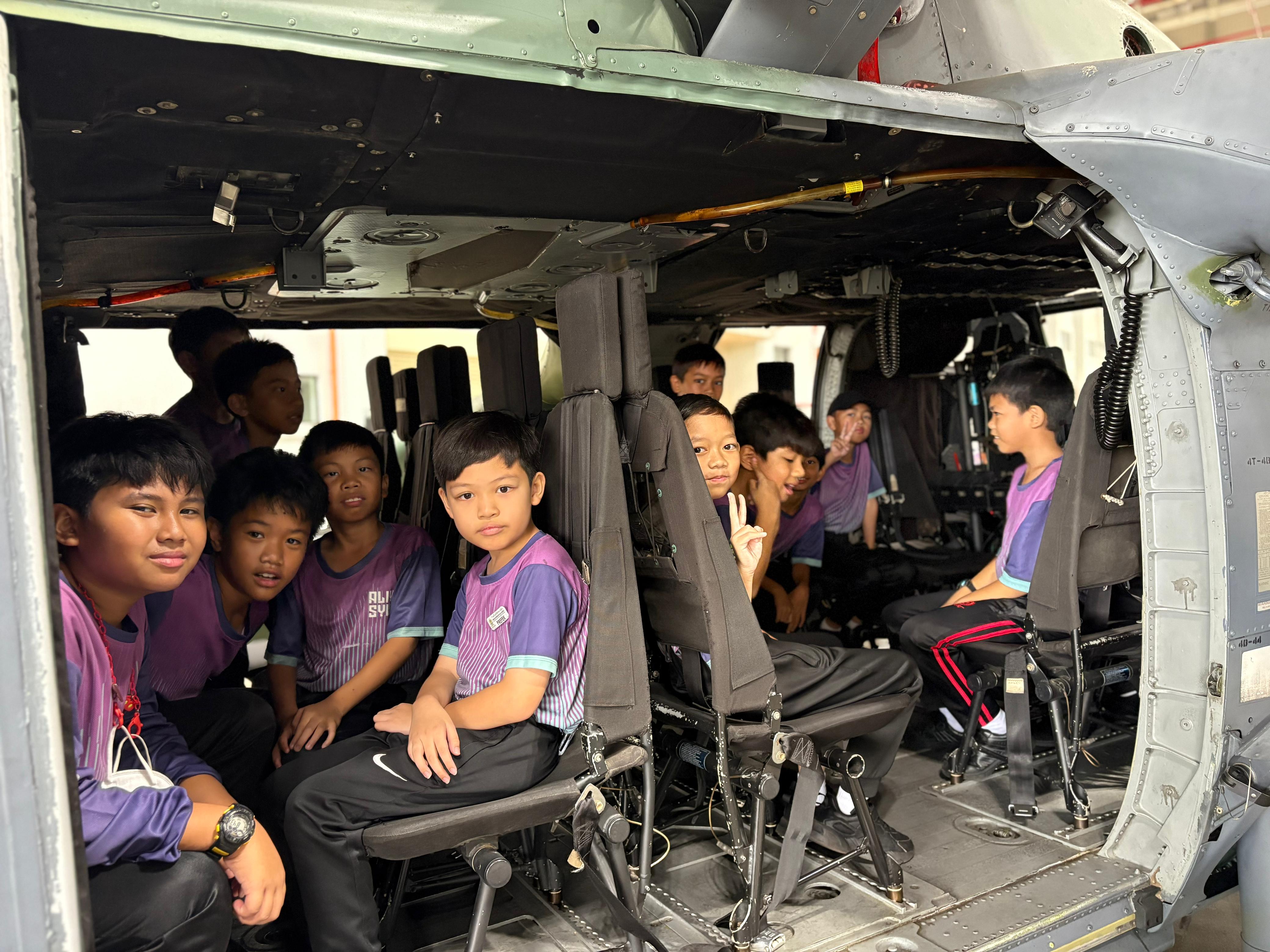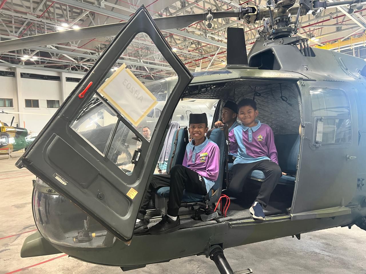 The educational visit aimed to enhances students' understanding of the RBAirF's responsibilities while fostering interest, curiosity and patriotism among the younger generation to one day serving in the Royal Brunei Armed Forces (RBAF).