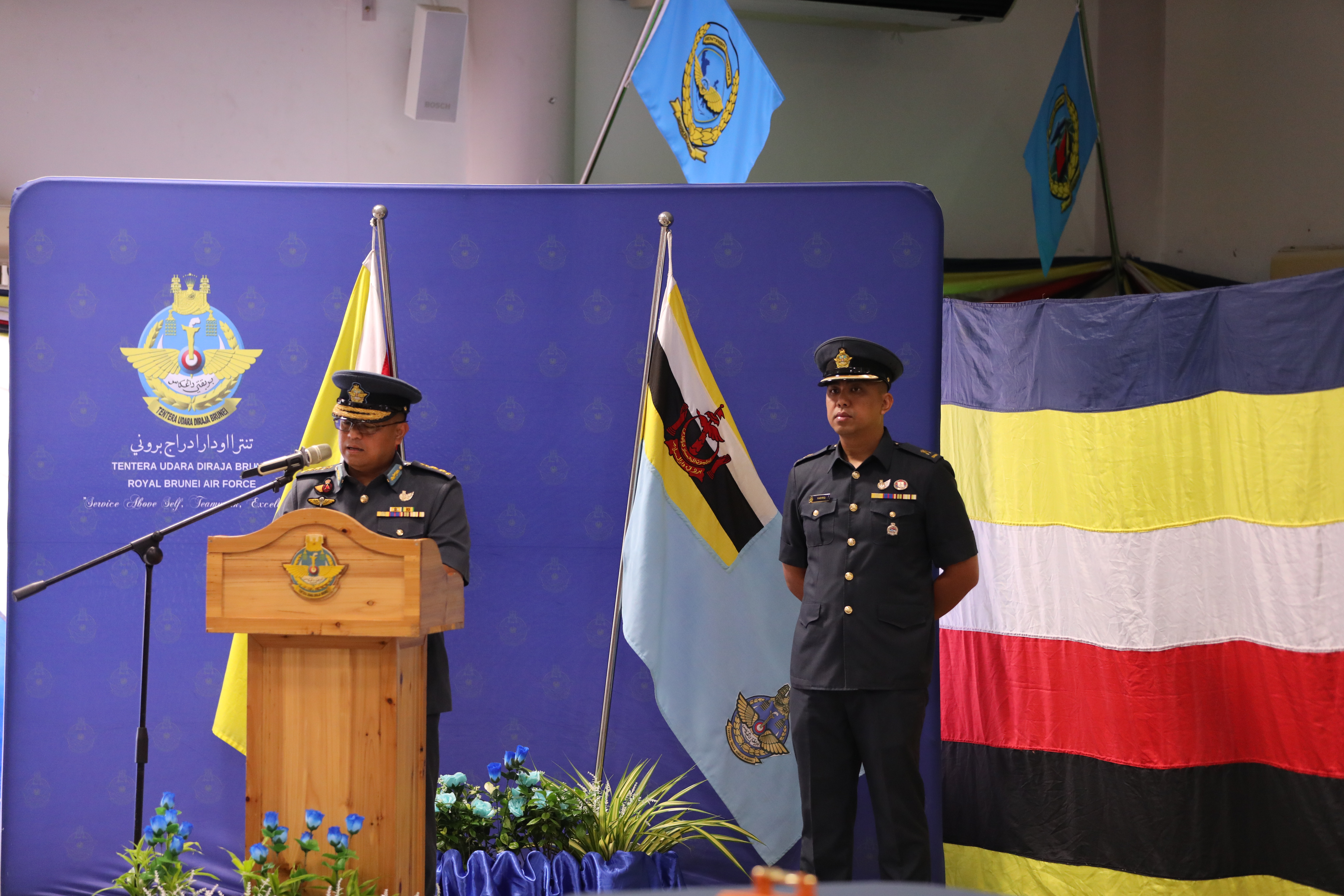 Surah Al-Fatihah led by Ustaz Pengiran Fakhrul Syakirin bin Pengiran Haji Zainuddin, the RBAirF religious teacher, followed by a farewell address delivered by the outgoing Deputy Commander. In his speech, he expressed his heartfelt gratitude to His Majesty The Sultan and Yang Di-Pertuan of Brunei Darussalam for the trust and confidence bestowed upon him to hold the position and its responsibilities. He also reflected on his tenure and expressed heartfelt appreciation to all RBAirF personnel for their steadfast support and commitment throughout his service.