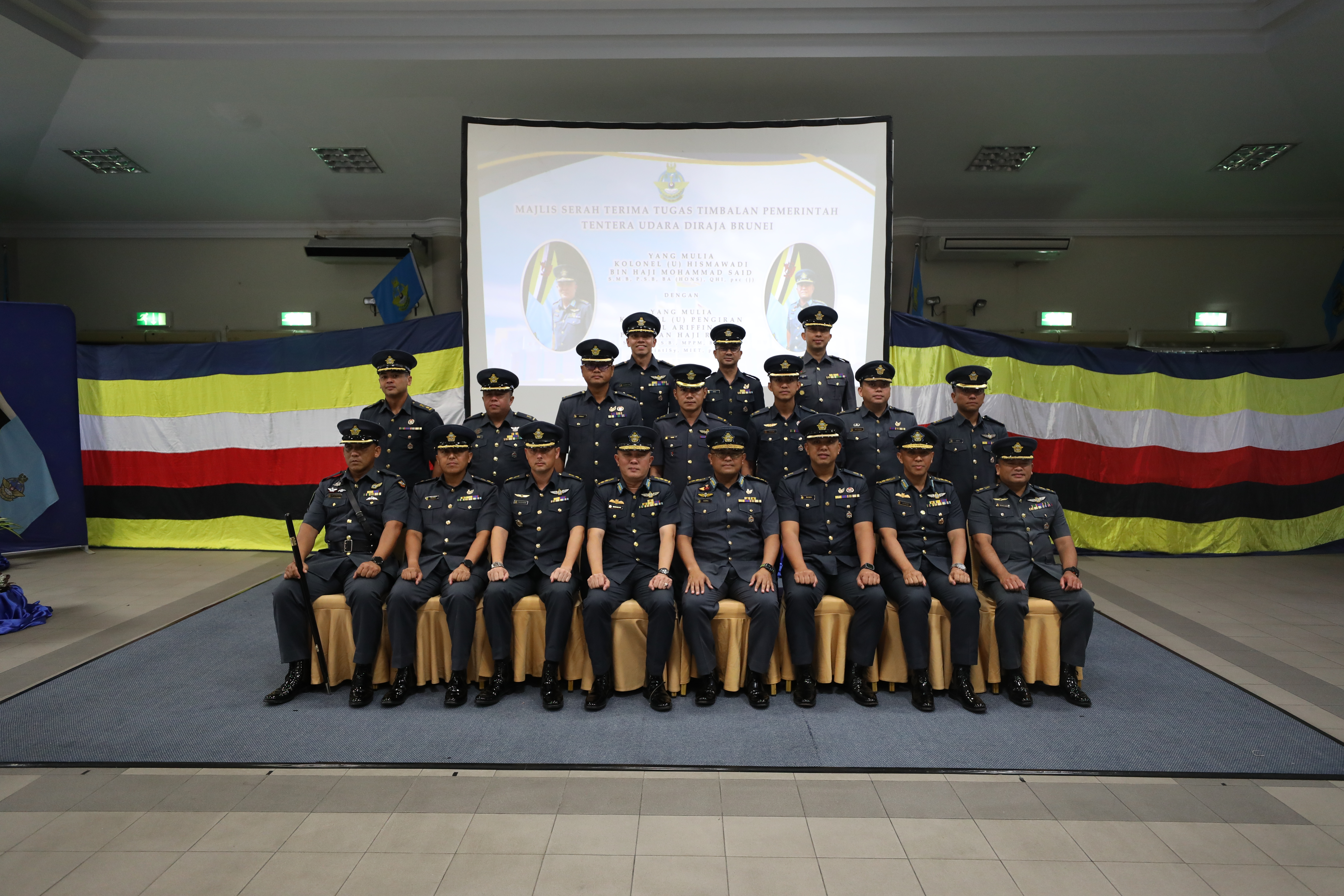 PANGKALAN TENTERA UDARA RIMBA, Khamis, 20 November 2025 – Tentera Udara Diraja Brunei (TUDB) telah mengadakan Majlis Serah Terima Tugas bagi jawatan Timbalan Pemerintah TUDB bertempat di Dewan Punai, Pangkalan Tentera Udara Rimba. Majlis tersebut menandakan penyerahan rasmi tugas daripada Kolonel (U) Hismawadi bin Haji Md Said kepada Kolonel (U) Pengiran Hasrul Ariffin bin Pengiran Haji Rosley, berkuat kuasa 20 November 2025.