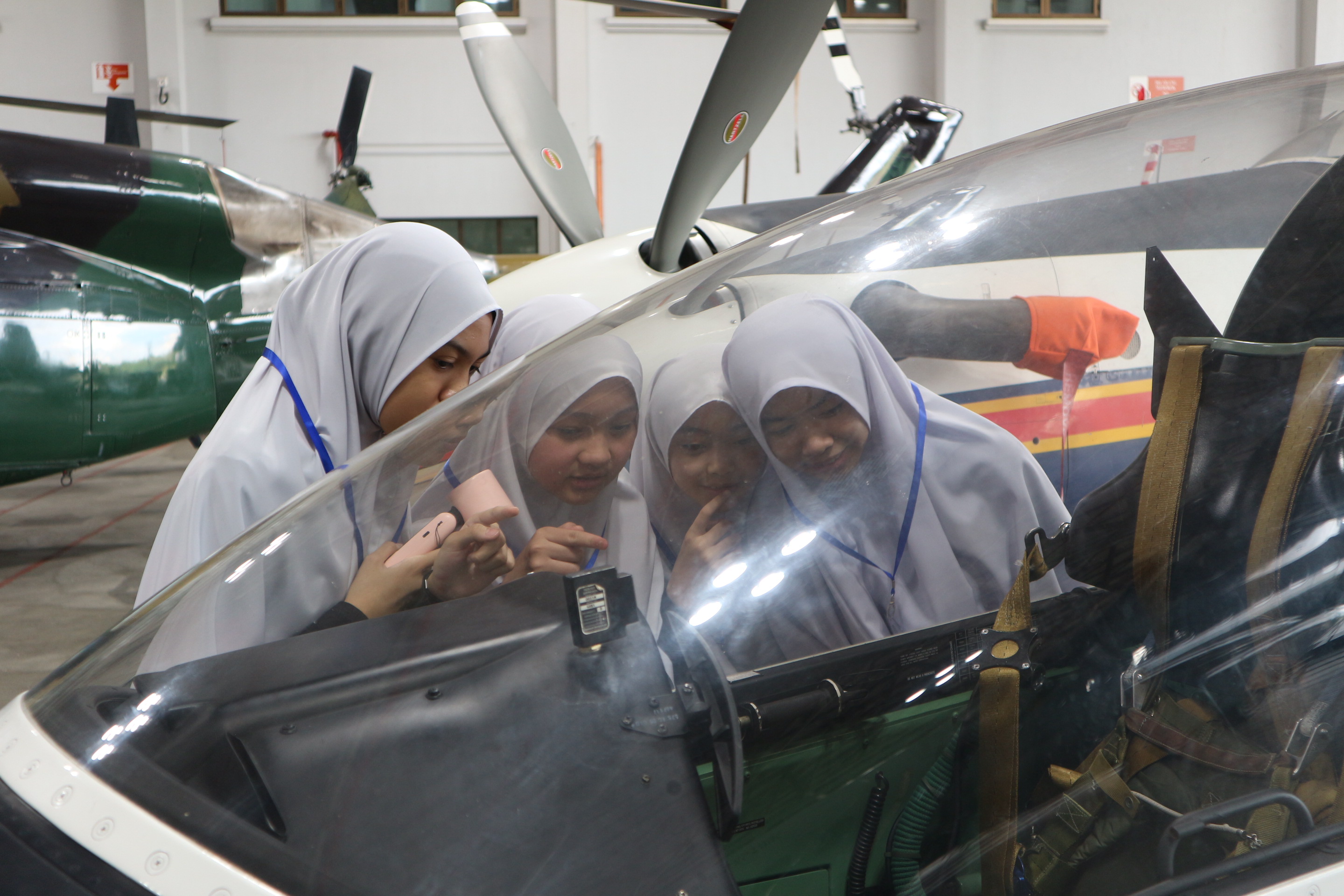 Throughout the programme, students participated in interactive activities with RBAirF personnel, including hands-on opportunities to explore equipment, try on Air Force uniforms, and step inside several aircrafts. The visit concluded with a group photo session to commemorate the occasion.