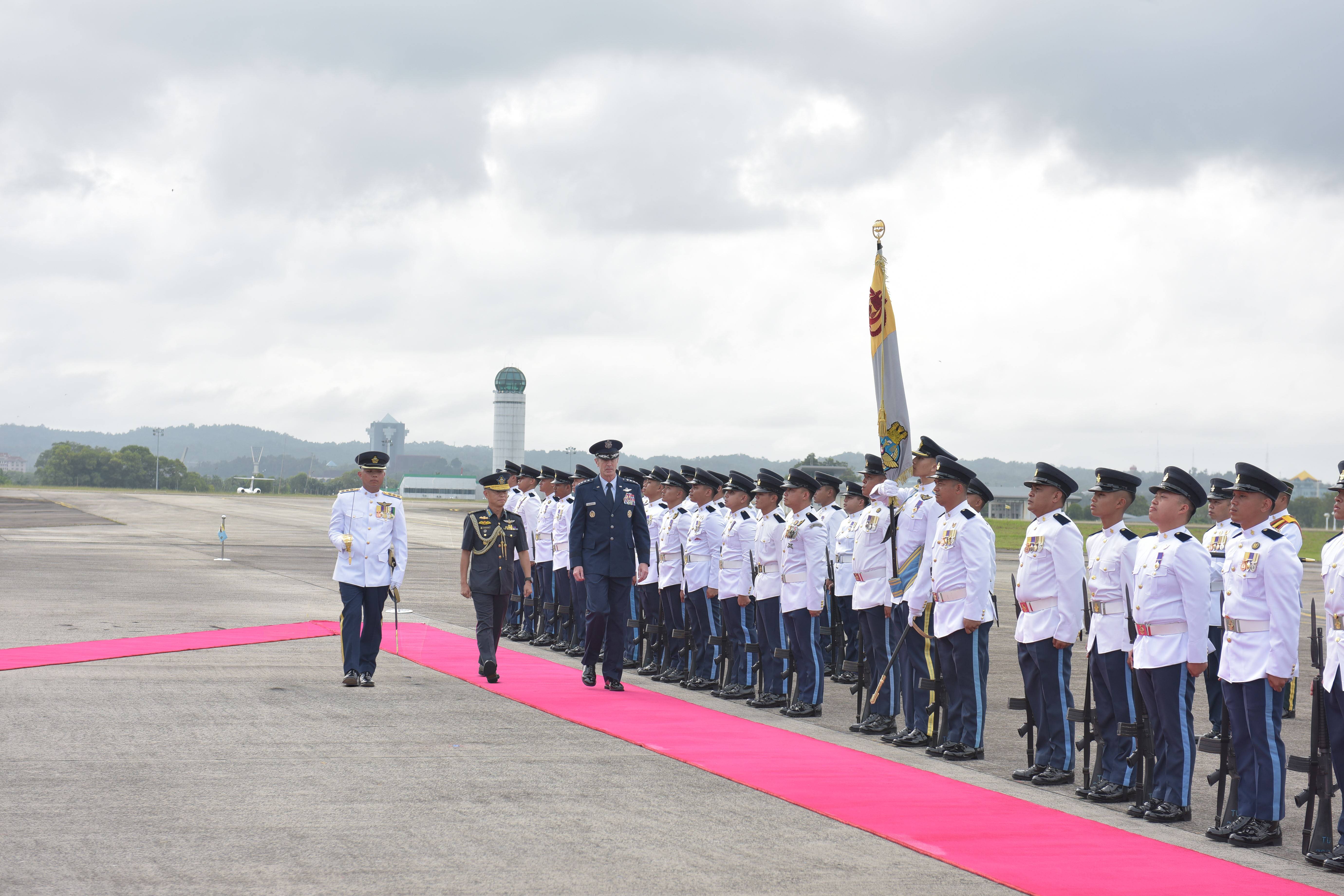 Upon arrival at the Air Movement Centre (AMC), General Schneider was accorded a Guard of Honour. He subsequently held an introductory call with Brigadier General (U) Haji Haszahaidi bin Haji Ahmad Daud, Commander RBAirF, at the Merpati Room. The leaders exchanged views on enhancing bilateral cooperation and enhancing interoperability for future operational engagement.