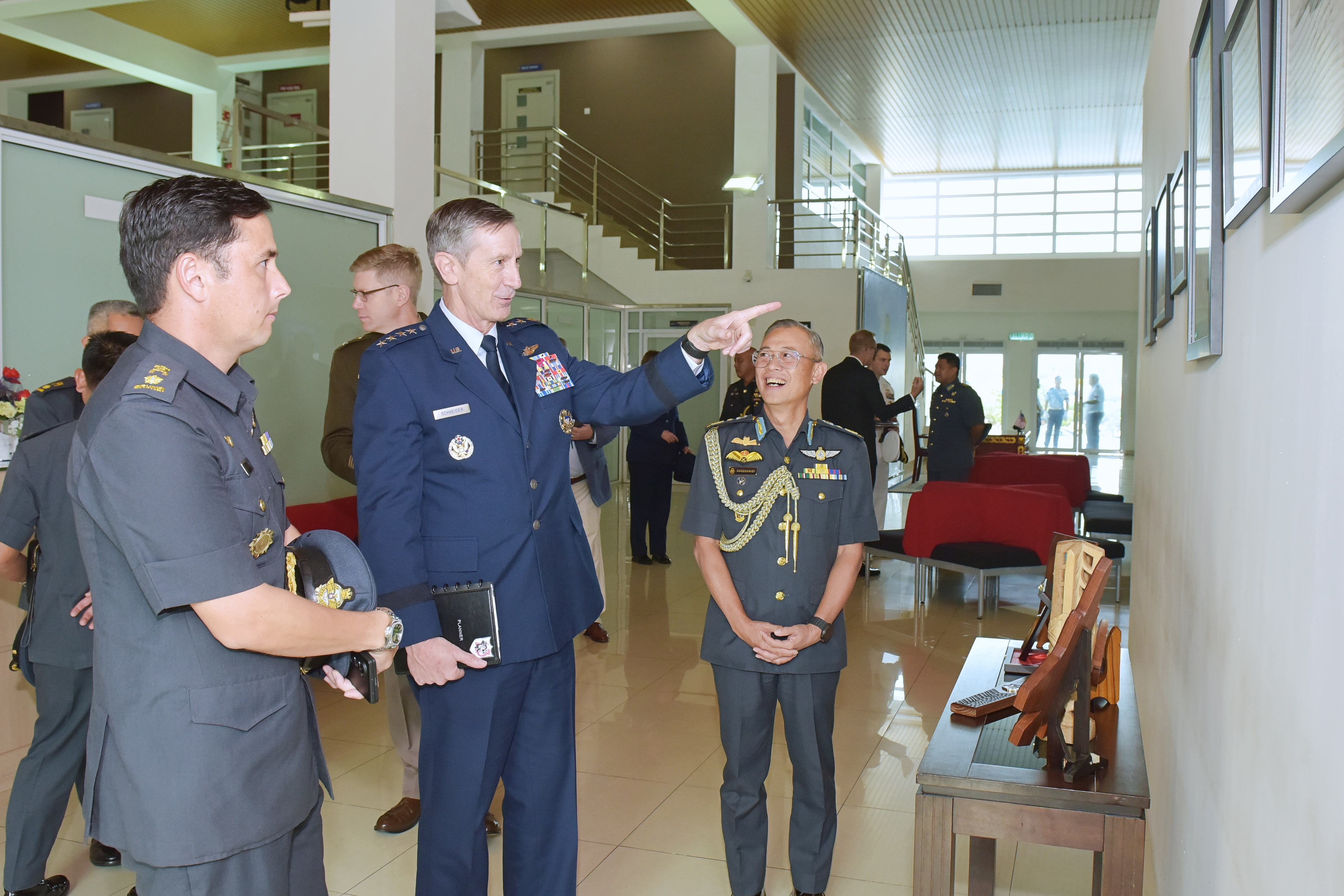 Sejurus tiba di Pusat Pergerakan Udara, Pangkalan Tentera Udara Rimba, Jeneral Schneider telah menerima Kawalan Kehormatan. Beliau seterusnya mengadakan kunjungan pengenalan kepada Yang Mulia Brigedier Jeneral (U) Haji Haszahaidi bin Haji Ahmad Daud, Pemerintah TUDB, di Bilik Merpati. Kedua-dua pemerintah bertukar pandangan mengenai peningkatan kerjasama dua hala dan menerokai peluang bagi penglibatan masa hadapan.