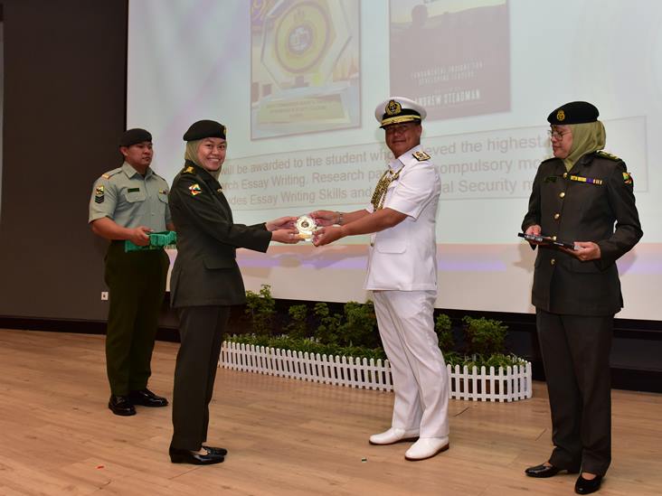 Tetamu kehormat mengucapkan tahniah kepada semua peserta kursus atas kerja keras dan dedikasi mereka semasa kursus itu, dan menyampaikan sijil kepada peserta kursus yang cemerlang. Anugerah Penuntut Terbaik Keseluruhan telah disandang oleh 964 Kapten (U) Muhd Izdihar bin Haji Imran dari Tentera Udara Diraja Brunei. Anugerah ‘Best Service Paper’ disandang oleh 1084 Kapten Amirul Adini bin Haji Amir Abas dari Tentera Darat Diraja Brunei, dan anugerah ‘Best Commander RBAF’s Paper’ disandang oleh 948 Kapten Dk Dr. Nurhayatul Filzah binti Pg Damit dari Pusat Optima Kecergasan Tentera.