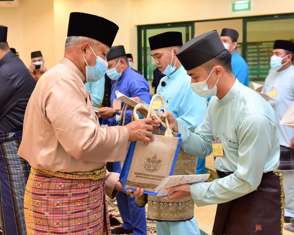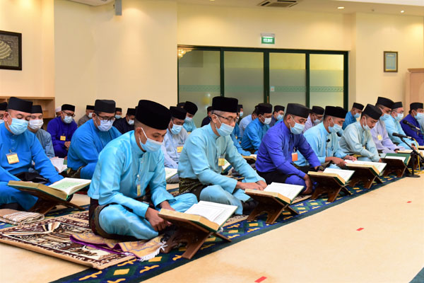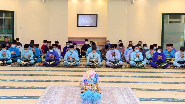 BOLKIAH GARRISON, Thursday, 25 February 2021 –In commemoration of the 37th National Day celebration of Brunei Darussalam, the Ministry of Defence and Royal Brunei Armed Forces (RBAF) held a Khatam Al-Quran ceremony at Surau Ad-Difa’, Bolkiah Garrison today.