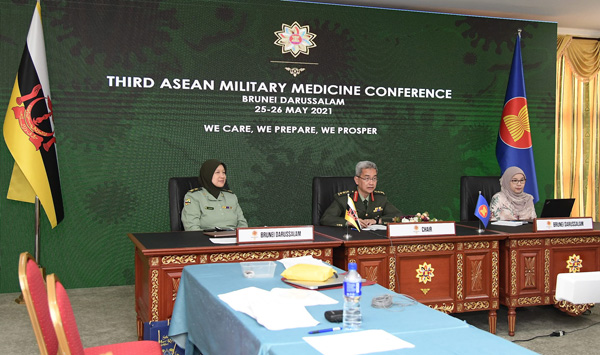 BERAKAS, Wednesday, 26 May 2021 – The 3rd ASEAN Military Medicine Conference (AMMC) hosted by the Ministry of Defence and the Medical Services, Royal Brunei Land Force, was held virtually at the International Convention Centre (ICC), Berakas today.