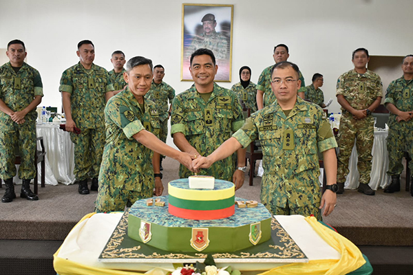 The ceremony then proceeded to the Officers' Mess, Lumut Camp, for cake cutting to mark RBLF's 61st Anniversary before proceeding with refreshments and Closing