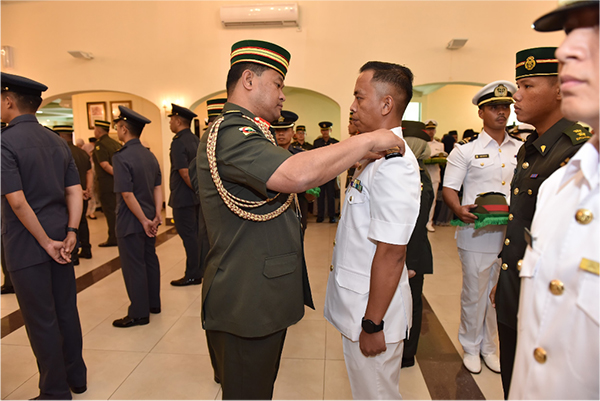 The insignia presentation was presented by Major General Dato Paduka Seri Haji Muhammad Haszaimi bin Bol Hassan, Commander of RBAF, at the Officers’ Mess, Berakas Garrison.