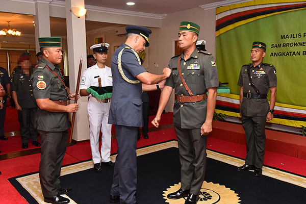 SAM BROWNE DAN TONGKAT SARJAN MEJAR ANGKATAN BERSENJATA DIRAJA BRUNEI (ABDB) KEPADA SARJAN MEJAR ABDB YANG BARU DILANTIK