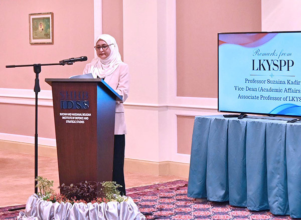 Ini disusuli dengan ucapan daripada Yang Mulia Profesor Suzaina Kadir, Naib Dekan Hal Ehwal Akademik merangkap Profesor Madya di LKYSPP, yang menekankan kepentingan ketelitian akademik dalam menghubungkan kerangka teori dengan pelaksanaan dasar awam secara praktikal. Mewakili kumpulan peserta, Yang Mulia Leftenan Kolonel (U) Pengiran Mohammad Ady Hafriz bin Pengiran Mohammad Yusof turut berkongsi pengalaman dan pelajaran yang diperolehi sepanjang program selama 14 minggu tersebut.