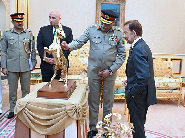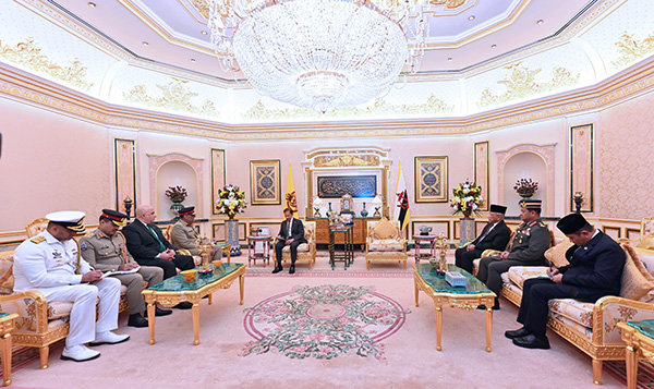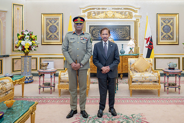 Istana Nurul Iman, Wednesday, 05 November 2025 - His Majesty Sultan Haji Hassanal Bolkiah Mu'izzaddin Waddaulah ibni Al-Marhum Sultan Haji Omar 'Ali Saifuddien Sa'adul Khairi Waddien, Sultan and Yang Di-Pertuan of Brunei Darussalam, today received in audience His Excellency General Sahir Shamshad Mirza, Chairman Joint Chiefs of Staff Committee (CJCSC), Pakistan Armed Forces. The Audience ceremony took place at Istana Nurul Iman.