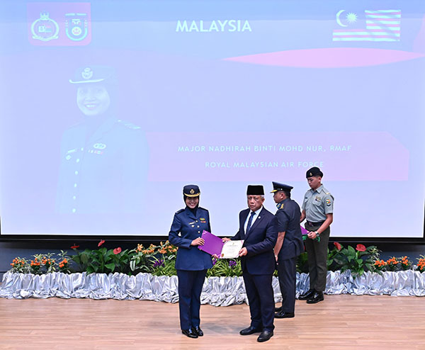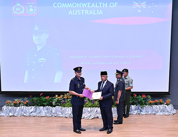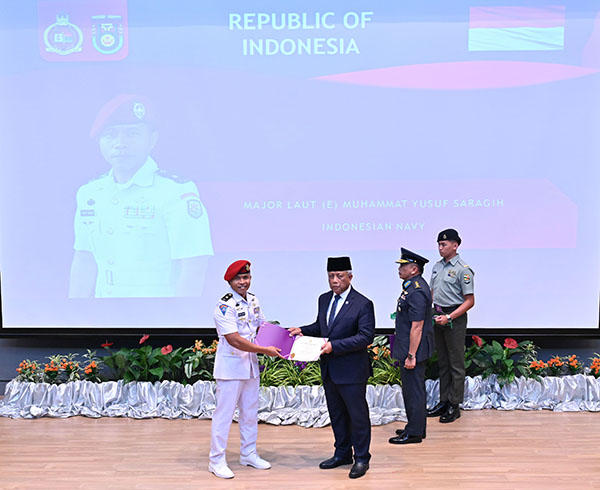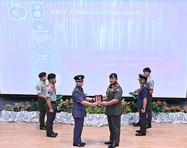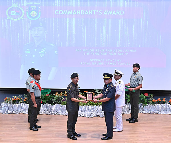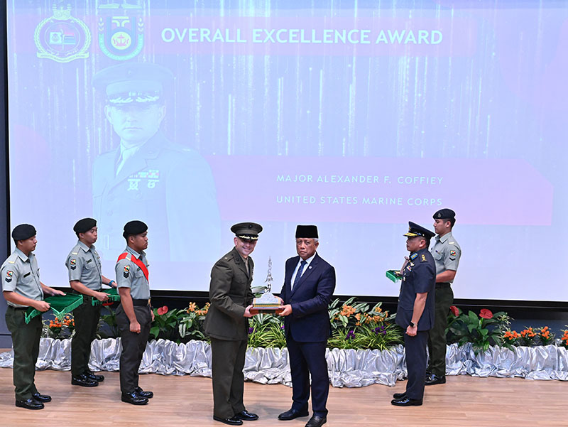 A total of four recognition awards were presented to outstanding course participants this year. The Overall Excellence Award was presented to Major Alexander F. Coffiey from the United States of America, while the Academic Excellence Award was presented to Major Chia Wei Peng, Fabian from the Republic of Singapore. Meanwhile, the RBAF Commendation Award was presented to Major (U) Muhammad Adib Bin Haji Hashim from the Royal Brunei Air Force, and the Commandant's Award was presented to Major Pengiran Abdul Rahim Bin Pengiran Haji Yakup from the Defence Academy RBAF.