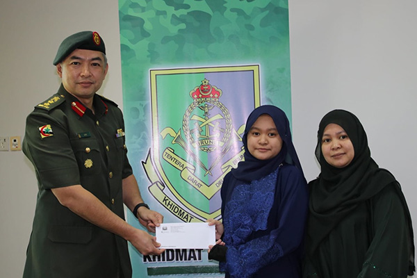Presenting the vouchers was Yang Mulia Colonel Haji Ismadi bin Haji Jumat, Director of Personnel from the Directorate of Personnel and Deputy Chairman II of the RBAF Welfare Fund. Also in attendance were the Acting General Manager of KOWIRA Dengan Tanggungan Berhad and Senior Officers of the RBAF.