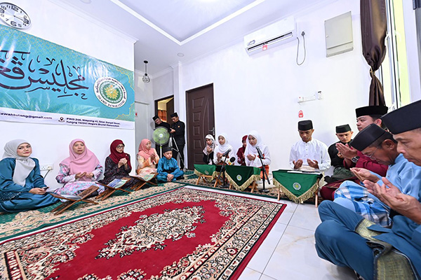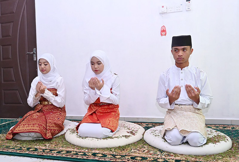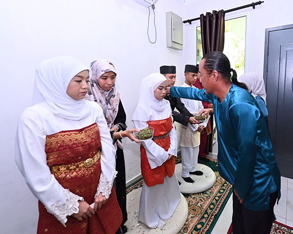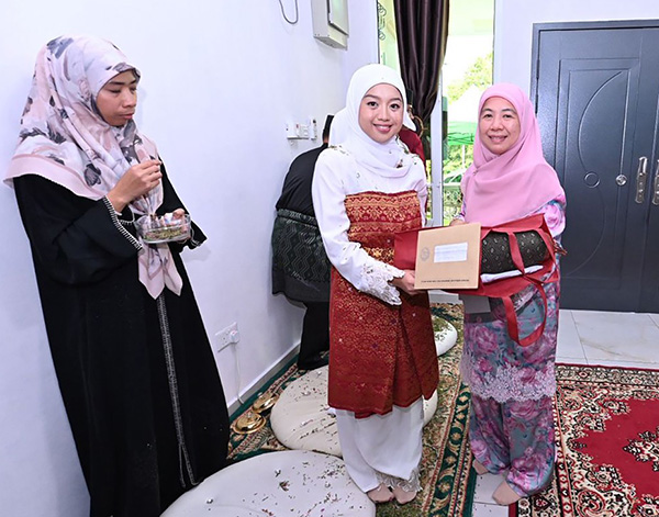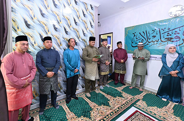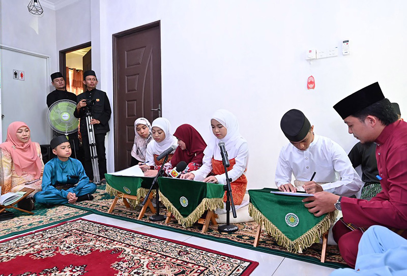 Subsequently, the recitation of Dua Kalimah Syahadah by the three siblings led by officers from the Islamic Da'wah Centre, Tutong District. The ceremony was further enlivened with the chanting of Takbir three times, followed by the recitation of Doa Pengislaman by Yang Mulia Lieutenant Colonel Abdul Mujib bin Haji Japar, Acting Director JAMA'AT, and concluded with Dikir Marhaban and the sprinkling of bunga rampai.