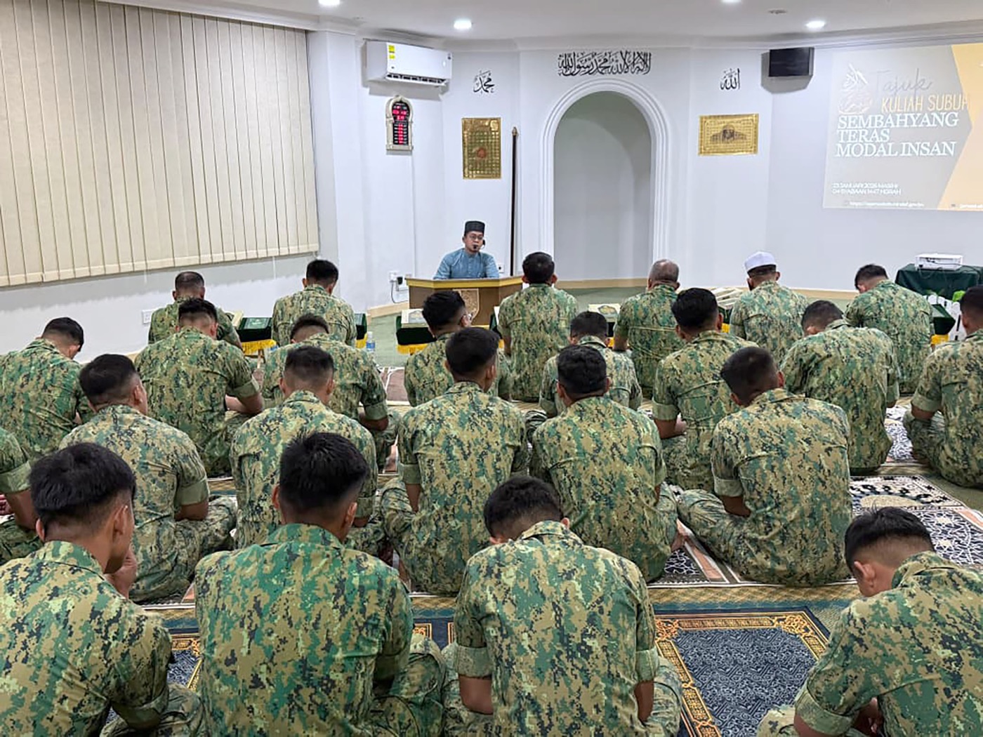 kuliah subuh (lecture) entitled “Sembahyang Teras Modal Insan Cemerlang” (Prayer as the Foundation of Human Excellence), delivered by Yang Mulia Ustaz Mohammad Rif’at Atiyah bin Anwari, Special Duties Officer Grade II, RBAF Religious Directorate