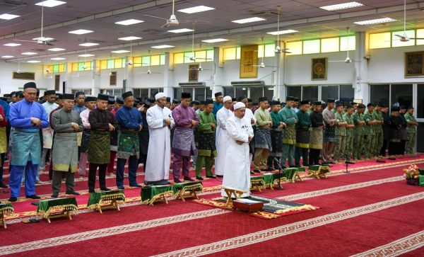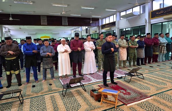 The Ministry of Defence also held mass Sunat Hari Raya Prayer simultaneously at across all Royal Brunei Armed Forces (RBAF) camp suraus including Pulau Baru Mosque, with the focal event at Surau Ad-Difa', Bolkiah Garrison.