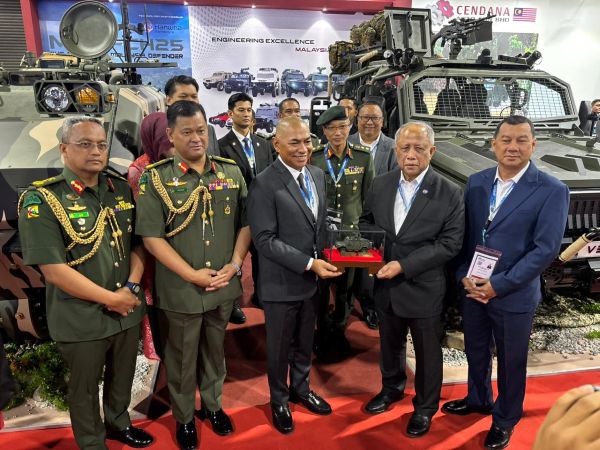 Yang Berhormat Pehin Datu Lailaraja Major General (Retired) Dato Paduka Seri Haji Awang Halbi bin Haji Mohd Yussof, Minister at the Prime Minister’s Office and Minister of Defence II, during a visit to the booth of Cendana Auto Sdn Bhd, a Malaysian defence company, at DSA 2026 and NATSEC Asia 2026 exhibitions.