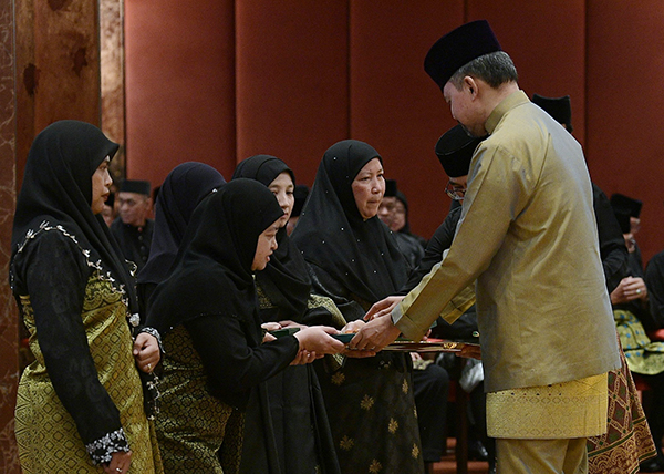 The Investiture Ceremony took place at the Balai Singgahsana Indera Kenchana, Istana Nurul Iman. His Royal Highness Prince Haji Al-Muhtadee Billah, the Crown Prince and Senior Minister at the Prime Minister's Office officiated the conferment of the State Honorary Medals as His Majesty's personal representative. Also in attendance were His Royal Highness Prince 'Abdul Malik and His Royal Highness Prince 'Abdul Mateen.