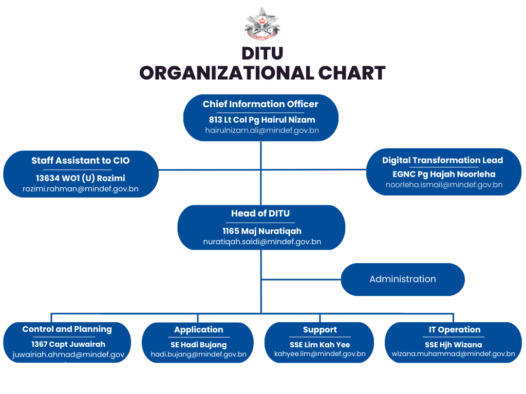 Defence Information Technology Unit (DITU), also known as Unit Teknologi Maklumat Pertahanan (UTMP) was officially launched on 9 July 2002 by Yang Berhormat Pehin Orang Kaya Amar Pahlawan Dato Seri Setia Awang Haji Zakaria bin Datu Mahawangsa Haji Sulaiman. It was inaugurated in Block 232 Bolkiah Camp.