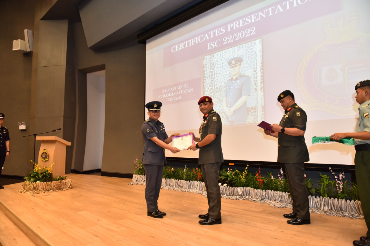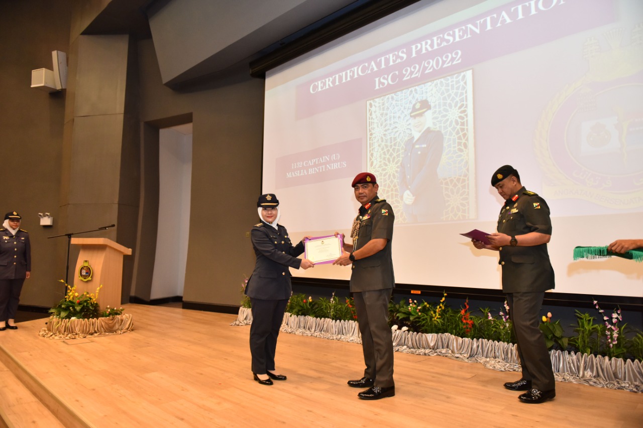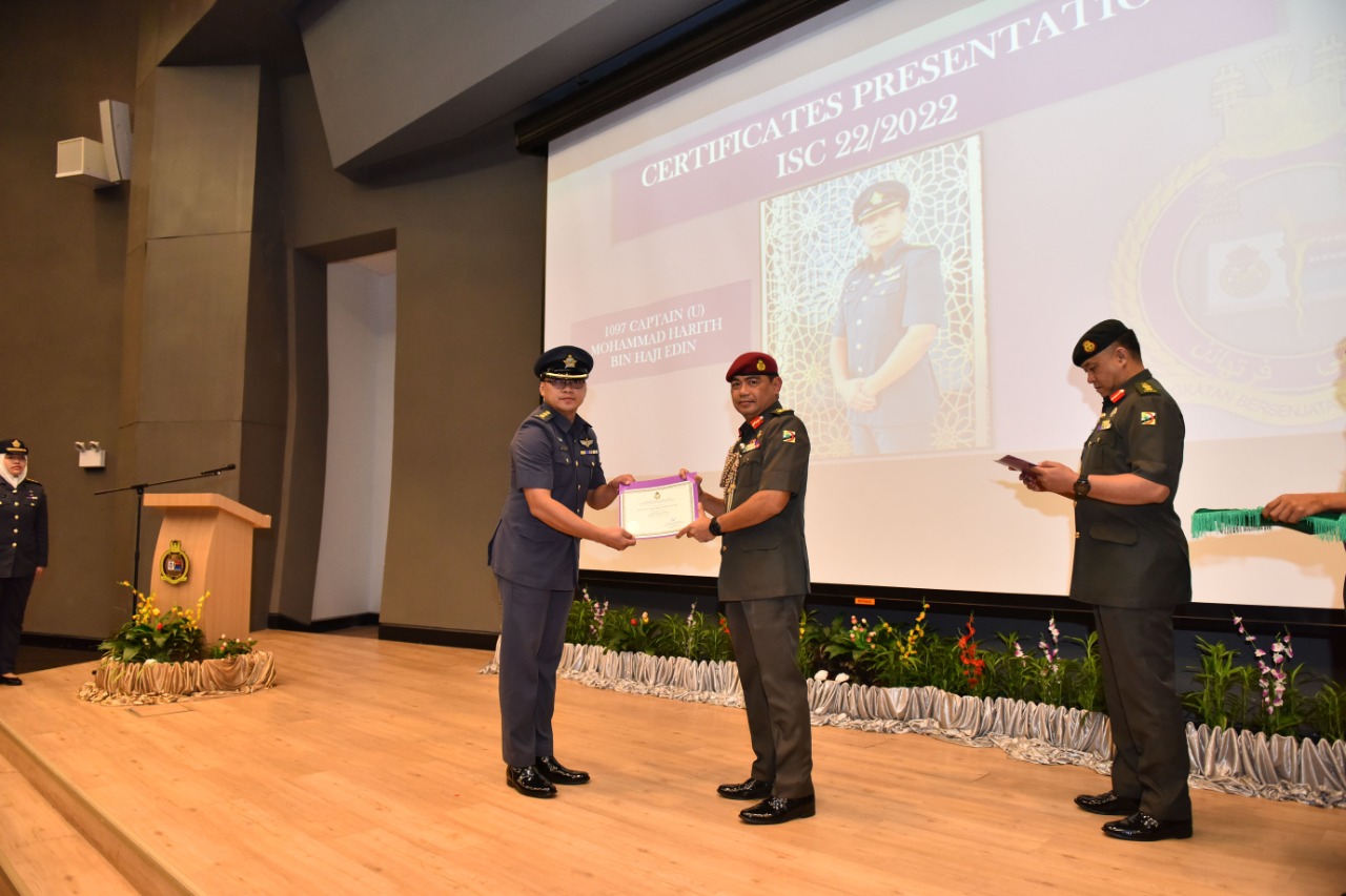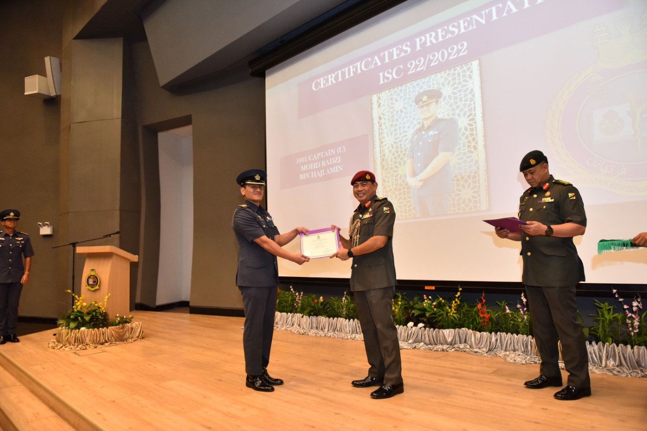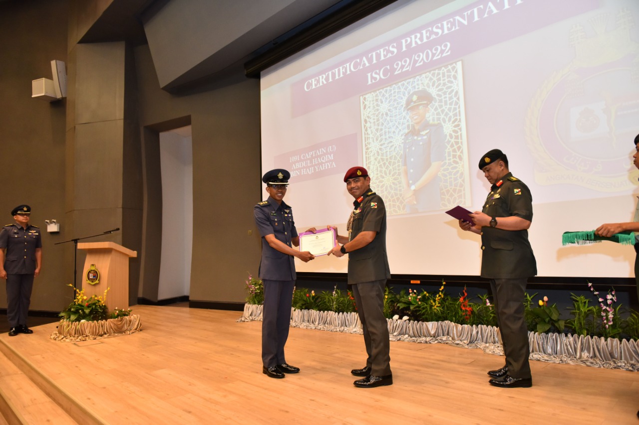 KG. TANAH JAMBU, Thursday, 08 December 2022 – A total of 12 Royal Brunei Air Force (RBAiF) officers completed the 22nd Royal Brunei Armed Forces (RBAF) Intermediate Staff Course (ISC) hosted by the Leadership and Management Centre, Defence Academy Royal Brunei Armed Forces (DA RBAF). The closing ceremony was held at the DA RBAF today.