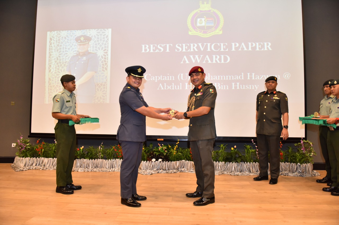 During the ceremony, Captain (U) Mohammad Hazwan @ Abdul Haady bin Husny from the RBAirF Headquarters, was awarded the Best Service Paper, an award which is given to the student who achieved the highest mark in service paper which is one of the compulsory modules under non-operational staff duties phase.