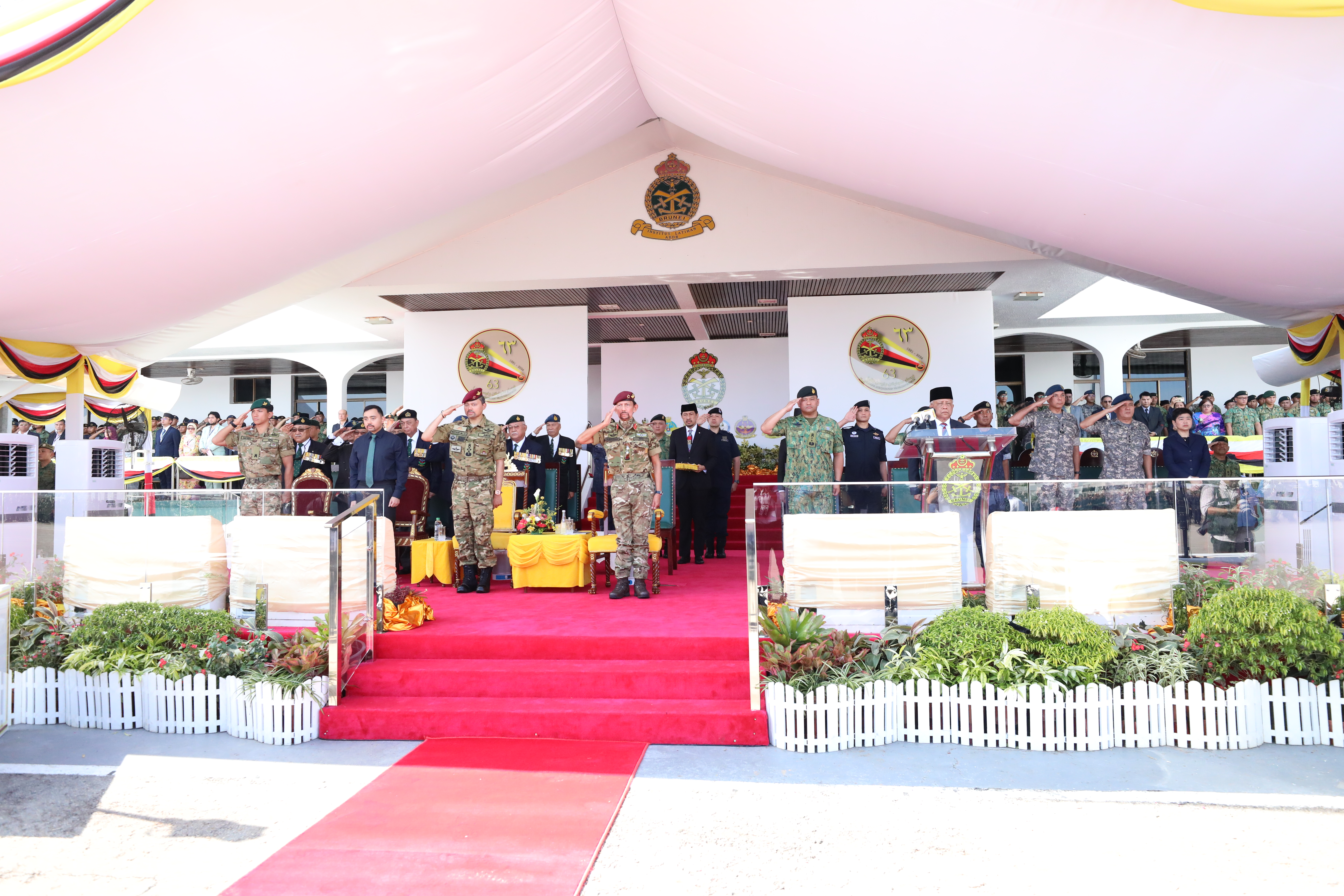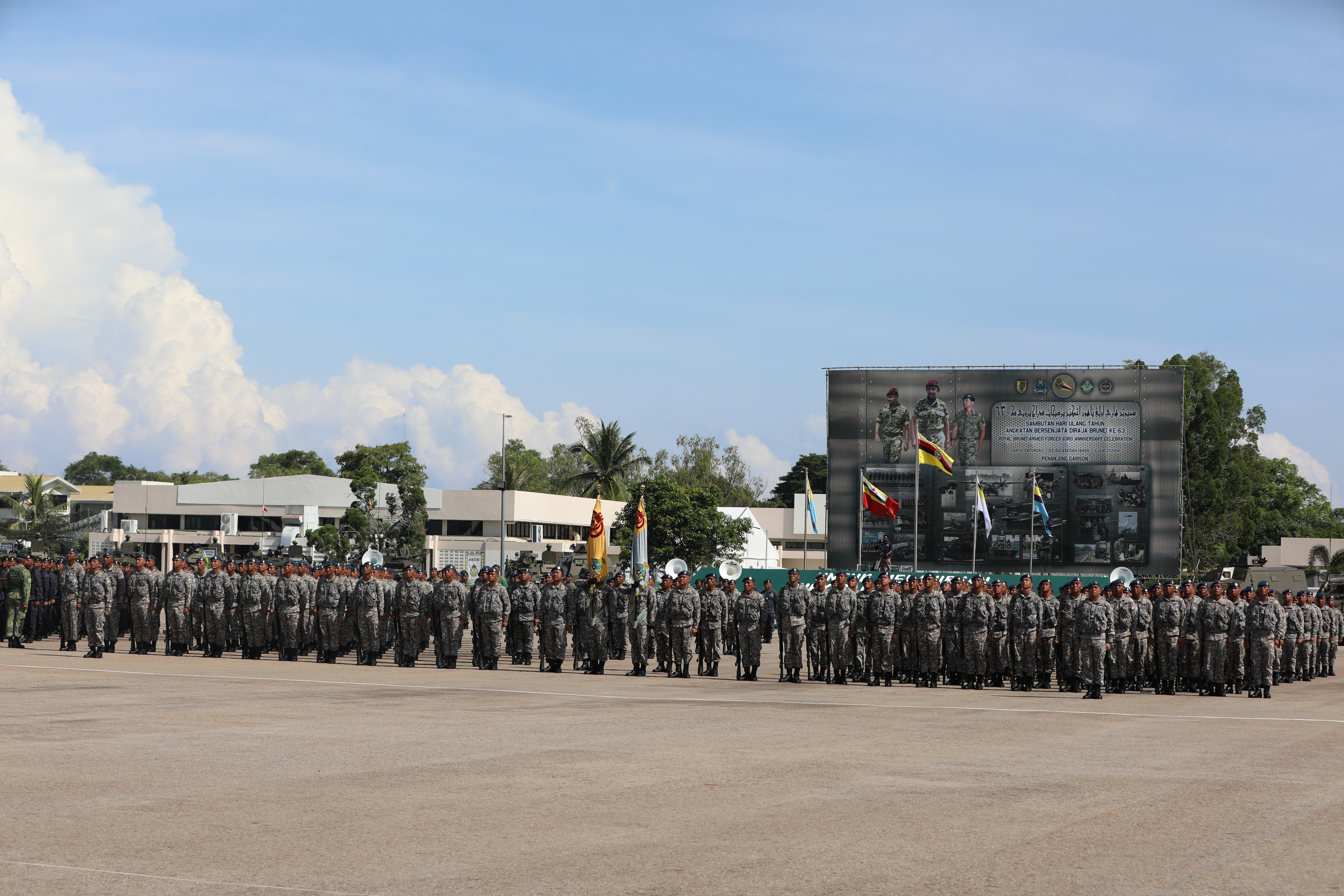 PENANJONG GARRISON, Saturday, 01 June 2024 – The Royal Brunei Armed Forces (RBAF) 63rd Anniversary was held at Penanjong Garrison, Tutong and was graced by His Majesty Sultan Haji Hassanal Bolkiah Mu'izzaddin Waddaulah ibni Al-Marhum Sultan Haji Omar 'Ali Saifuddien Sa'adul Khairi Waddien, Sultan and Yang Di-Pertuan of Negara Brunei Darussalam.