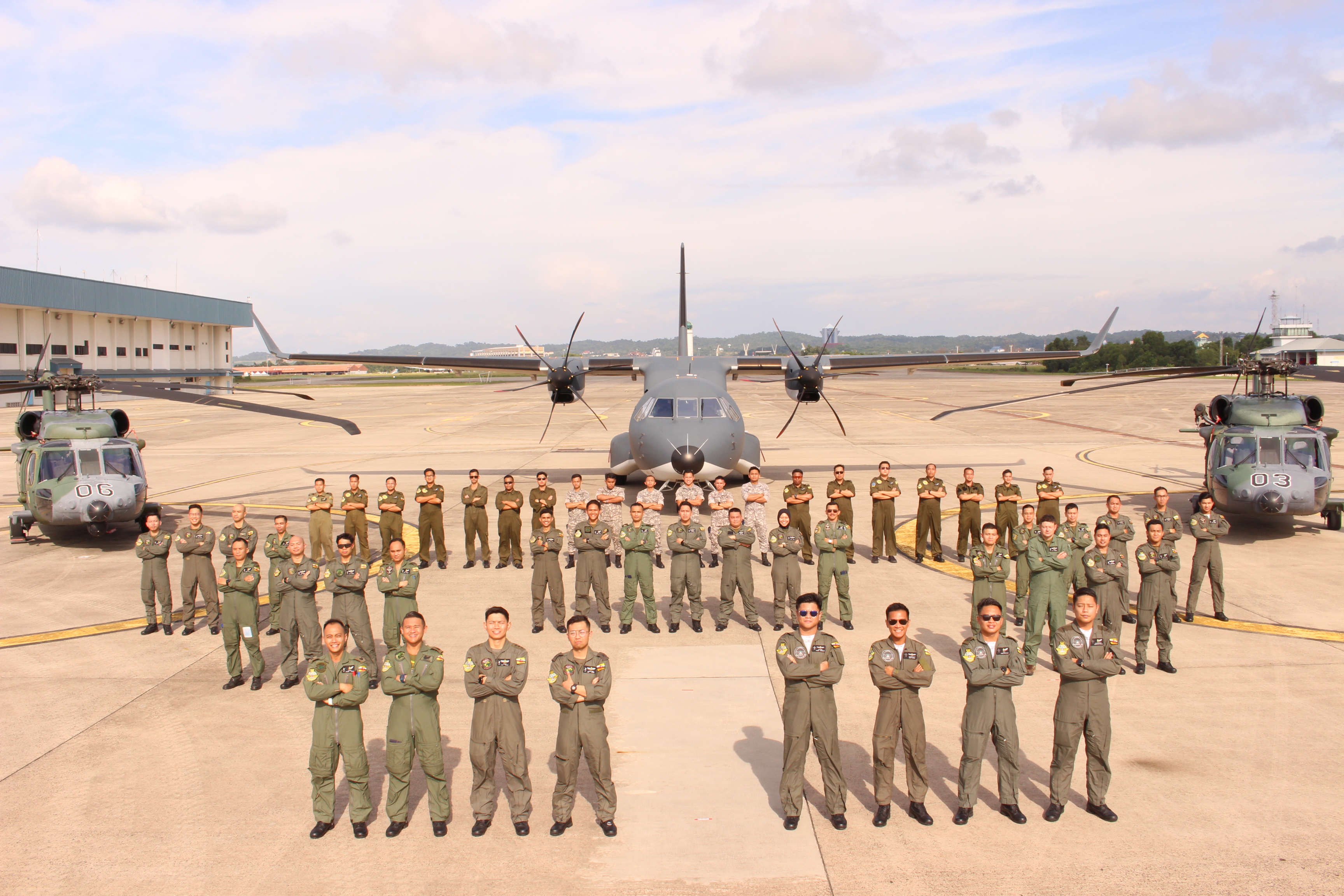 One of the highlights of the RBAF's 63rd anniversary Grand Parade was the RBAirF aircraft diamond formation flypast featuring six Sikorsky Blackhawk S70i led by Major (U) Muhammad Adib bin Haji Hashim and the Airbus C295MW flown by Major (U) Mohamad Adieb bin Abdul Rahman. The impressive flypast showcases the relentless teamwork and professionalism of its aircrew and personnel in the detailed planning and coordination to ensure the safe and successful conduct in support of the anniversary celebrations.