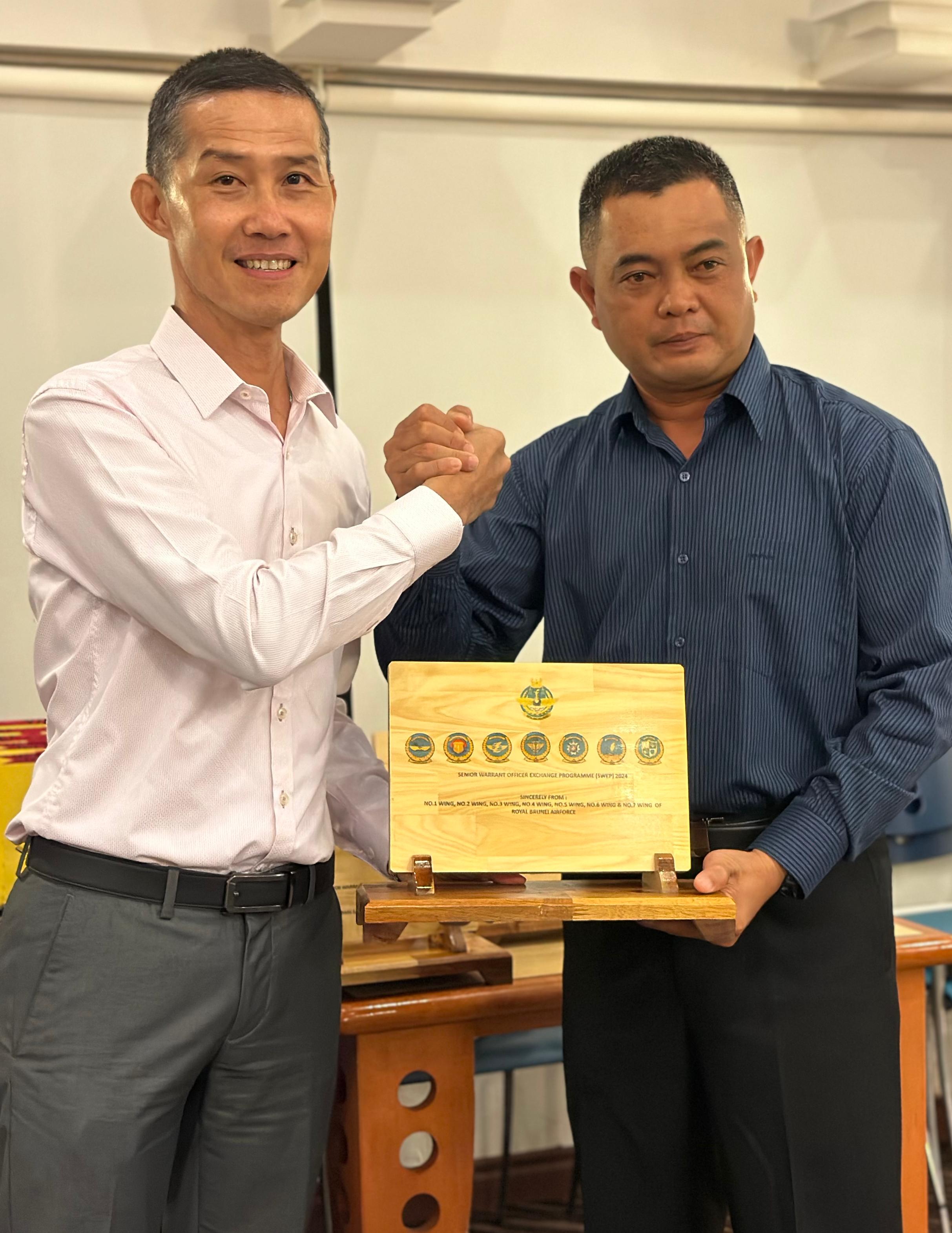 Tuesday, 04 June 2024 – In strengthening cooperation and defence diplomacy between the Royal Brunei Air Force (RBAirF) and the Singapore Air Force (RSAF), the Senior Warrant Officer Exchange Programme (SWEP 2024) was hosted by RBAirF from 30 May 2024 to 03 June 2024. Warrant Officer 1 (U) Pg Hj Redzaini bin Pg Hj Ahmad, RBAirF Base Sergeant Major with RBAirF delegations welcomed Military Expert 6 Ng See Lye, Air Force Command Chief and the RSAF delegation.
