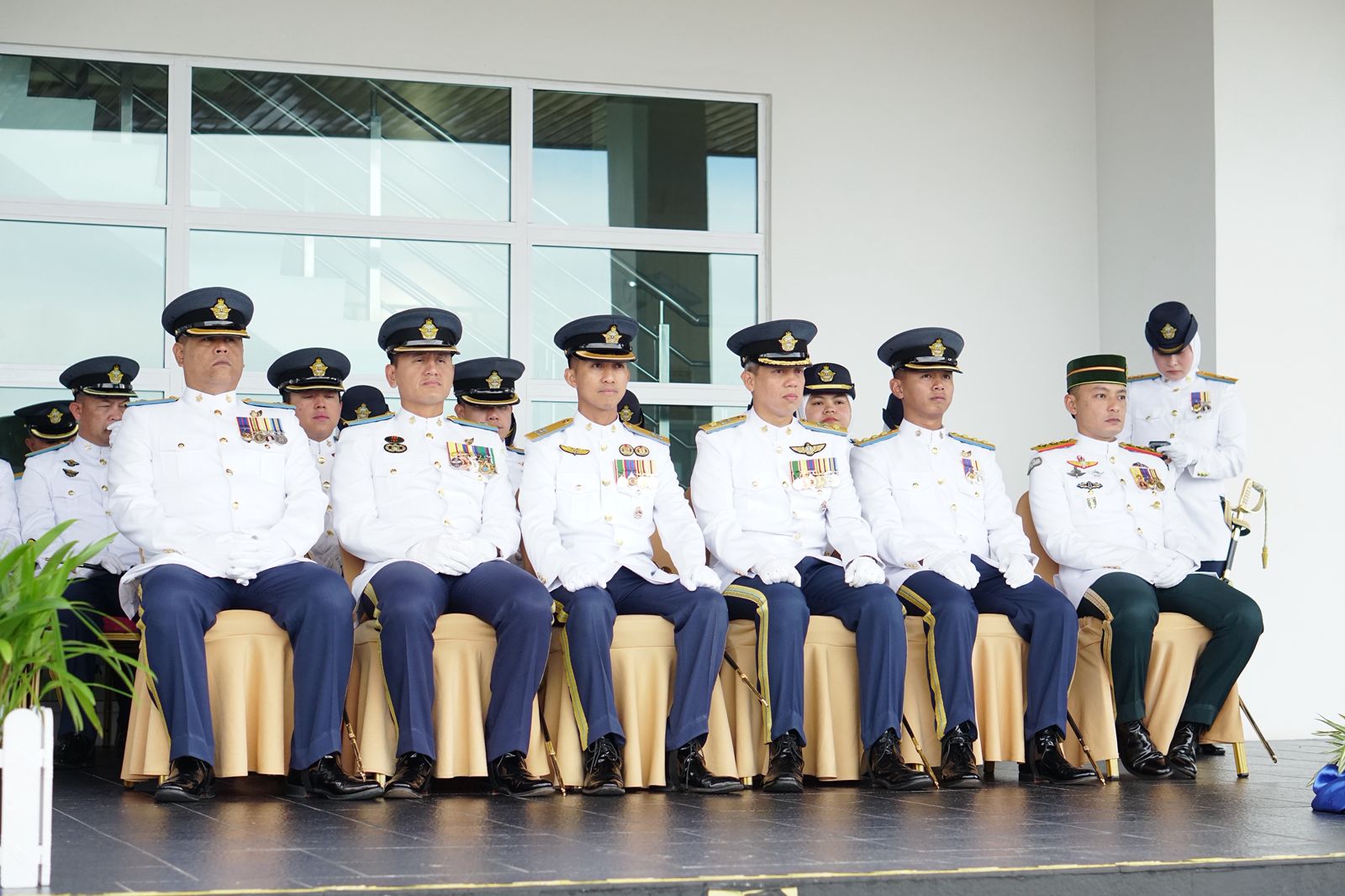 The ceremony continued with the signing of the Handover Takeover Certificate, officially symbolising the transfer of command and responsibilities. The newly appointed Wing Commander, Major (U) Muhammad Isyhak bin Haji Ismail, subsequently received an Honorary Salute and inspected the parade. In his inaugural speech, he expressed gratitude for the trust placed in him and reaffirmed his commitment to continue strengthening the operational group readiness, discipline, and esprit de corps.