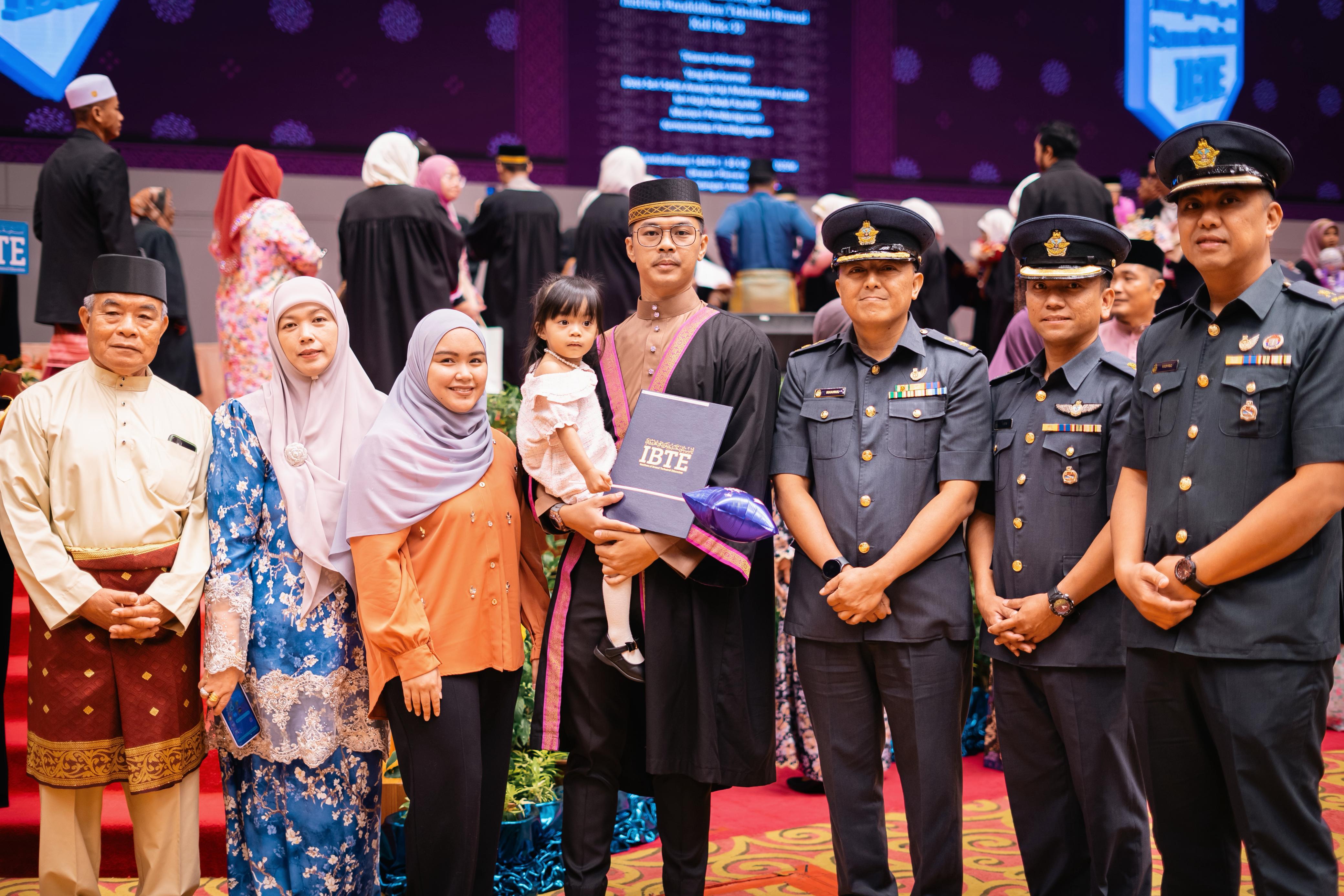 BERAKAS, Thursday, 30 October 2025 – Six (6) Personnel Royal Brunei Air Force (RBAirF) personnel received their Higher National Technical Education Certificate (HNTec) in Aircraft Maintenance Engineering during the Institute Brunei Technical Education's (IBTE) 33rd Convocation Ceremony held at the Plenary Hall, International Conference Center (ICC), Berakas.