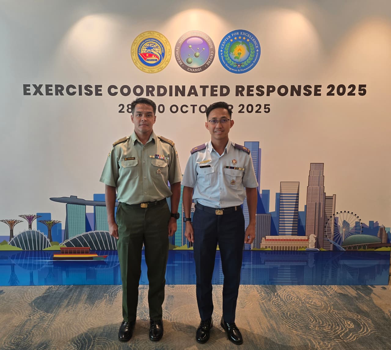 ​REPUBLIC OF SINGAPORE, Thursday, 30 October 2025 - Exercise Coordinated Response (Ex COORES), held at the Grand Copthorne Waterfront Hotel, Singapore from 28 October to 30 October 2025 was participated by Major (U) Muhammad Isyhak bin Haji Ismail as representative of Royal Brunei Air Force (RBAirF) and Major Khairul Azme bin Haji Mohidi from Royal Brunei Land Forces (RBLF).