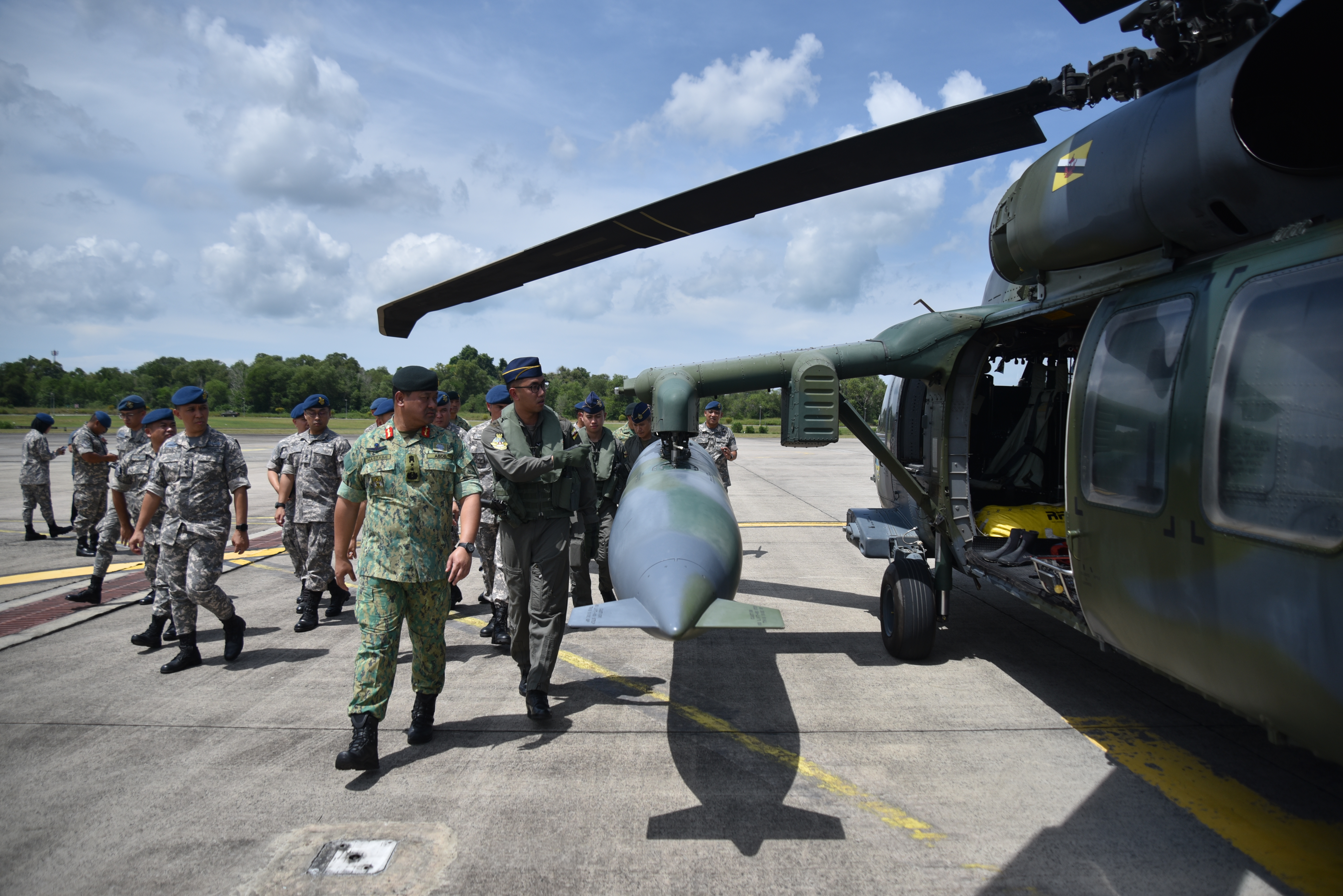 Blackhawk S-70i dalam konfigurasi yang berbeza untuk misi operasi yang pelbagai. Beliau juga diberi taklimat mengenai kemas kini kesediaan operasi, kelayakan dan keupayaan kru udara. Lawatan diteruskan ke tapak projek Kompleks Pertahanan Udara baharu bagi Cawangan No. 2.