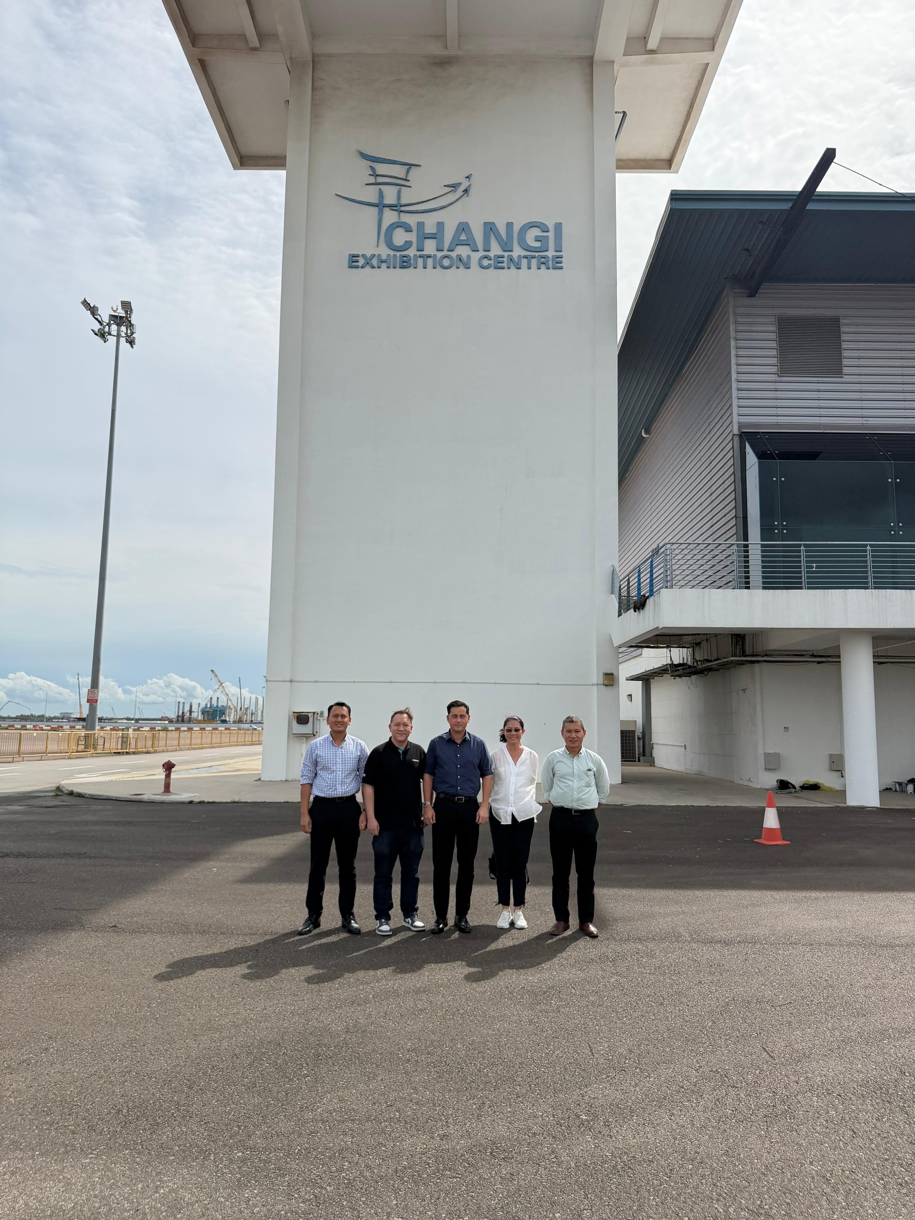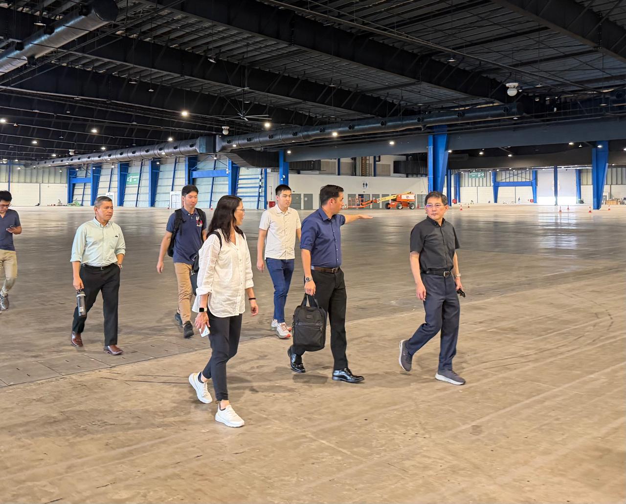 The delegation then attended a session with Experia Events Pte Ltd, hosted by Ms Lee Yang, Director (Exhibitions & Conferences), who provided an in-depth overview of airshow organisation, covering safety planning, risk management, and multi-agency coordination. The itinerary continued with a tour of the Changi Exhibition Centre (CEC), where the delegation was received by Mr Leck Chet Lam, Managing Director of Experia Events. The tour included comprehensive briefings on the venue's infrastructure, the static display layout, and the integrated functions of the operations centre and control tower.