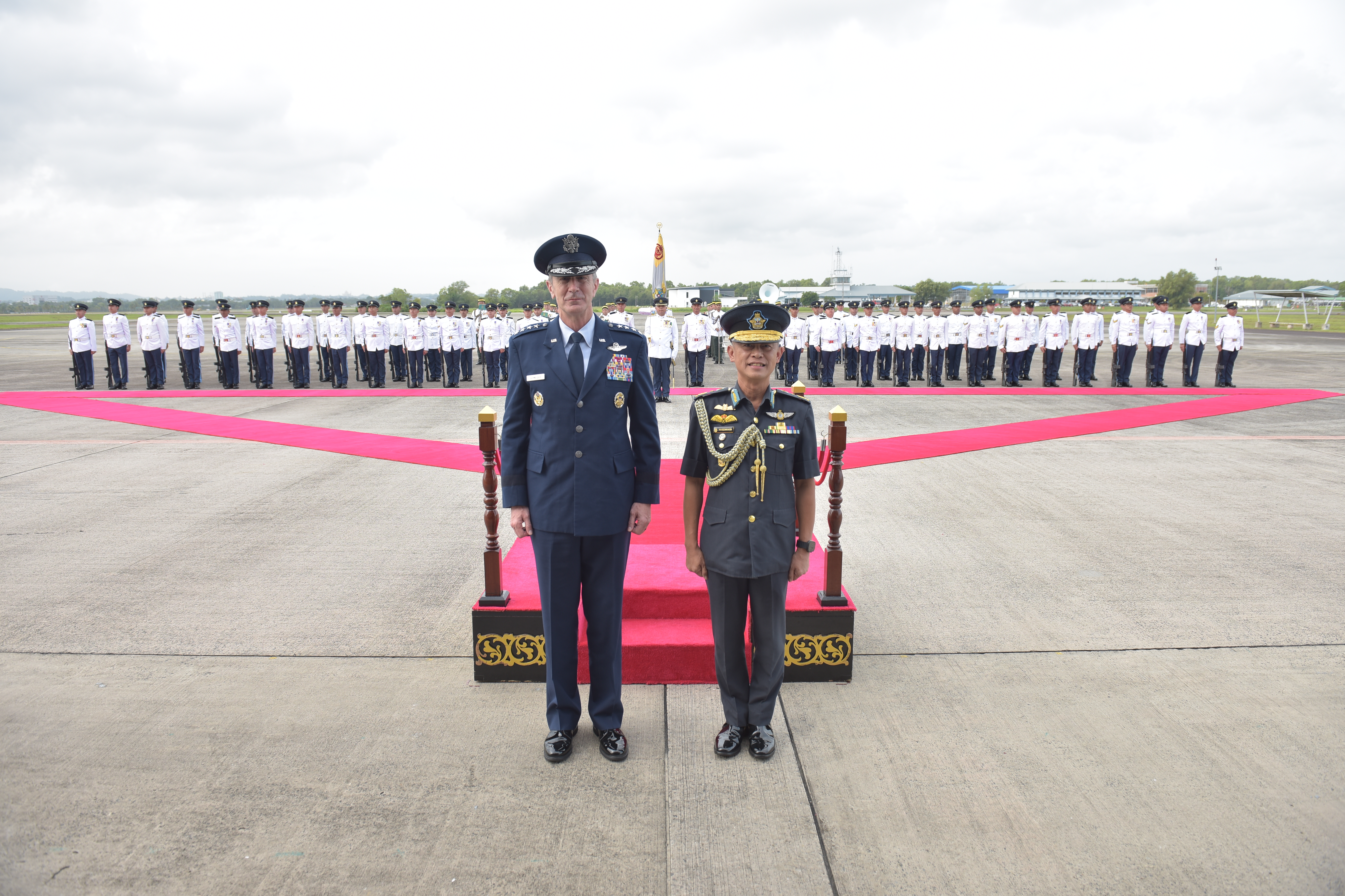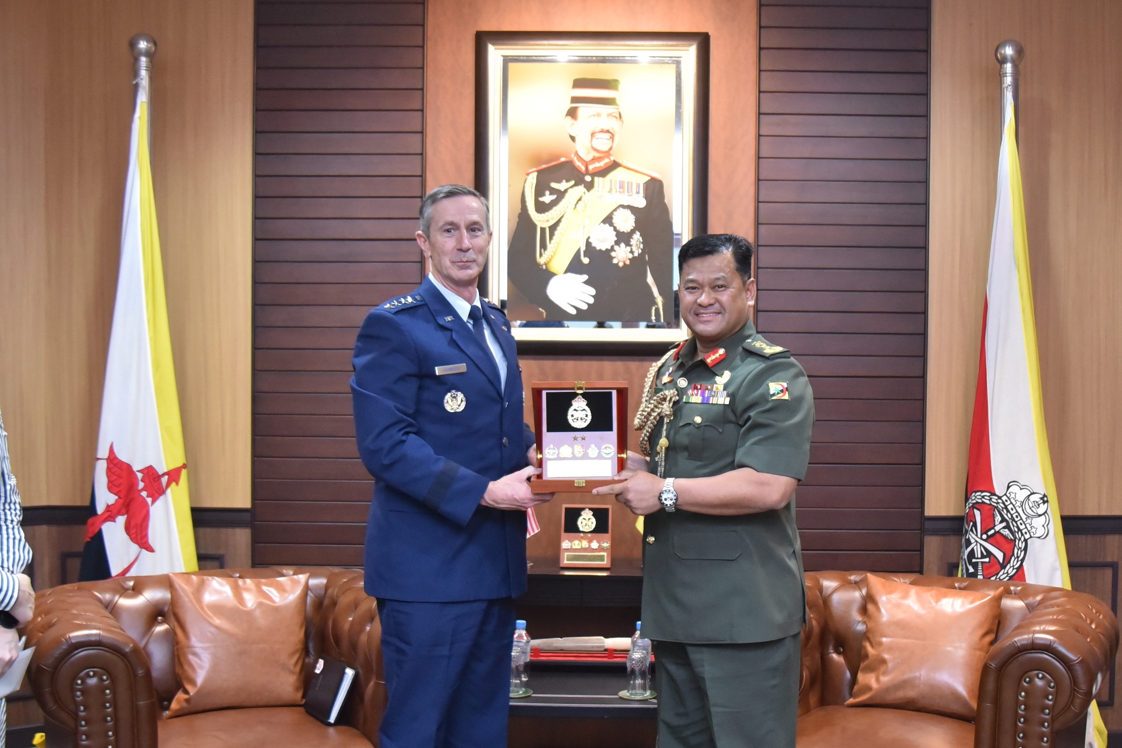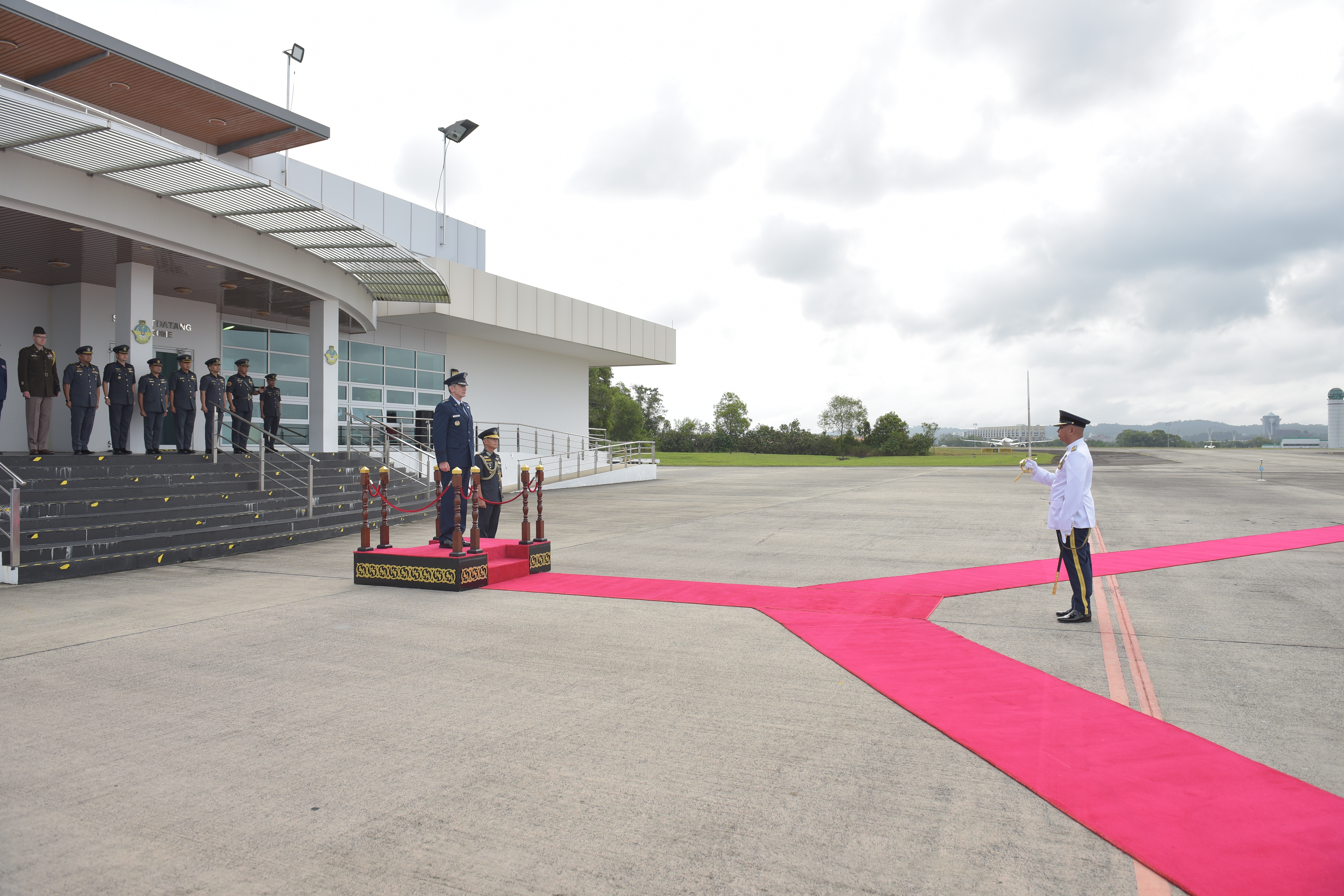 Upon arrival at the Air Movement Centre (AMC), General Schneider was accorded a Guard of Honour. He subsequently held an introductory call with Brigadier General (U) Haji Haszahaidi bin Haji Ahmad Daud, Commander RBAirF, at the Merpati Room. The leaders exchanged views on enhancing bilateral cooperation and enhancing interoperability for future operational engagement.