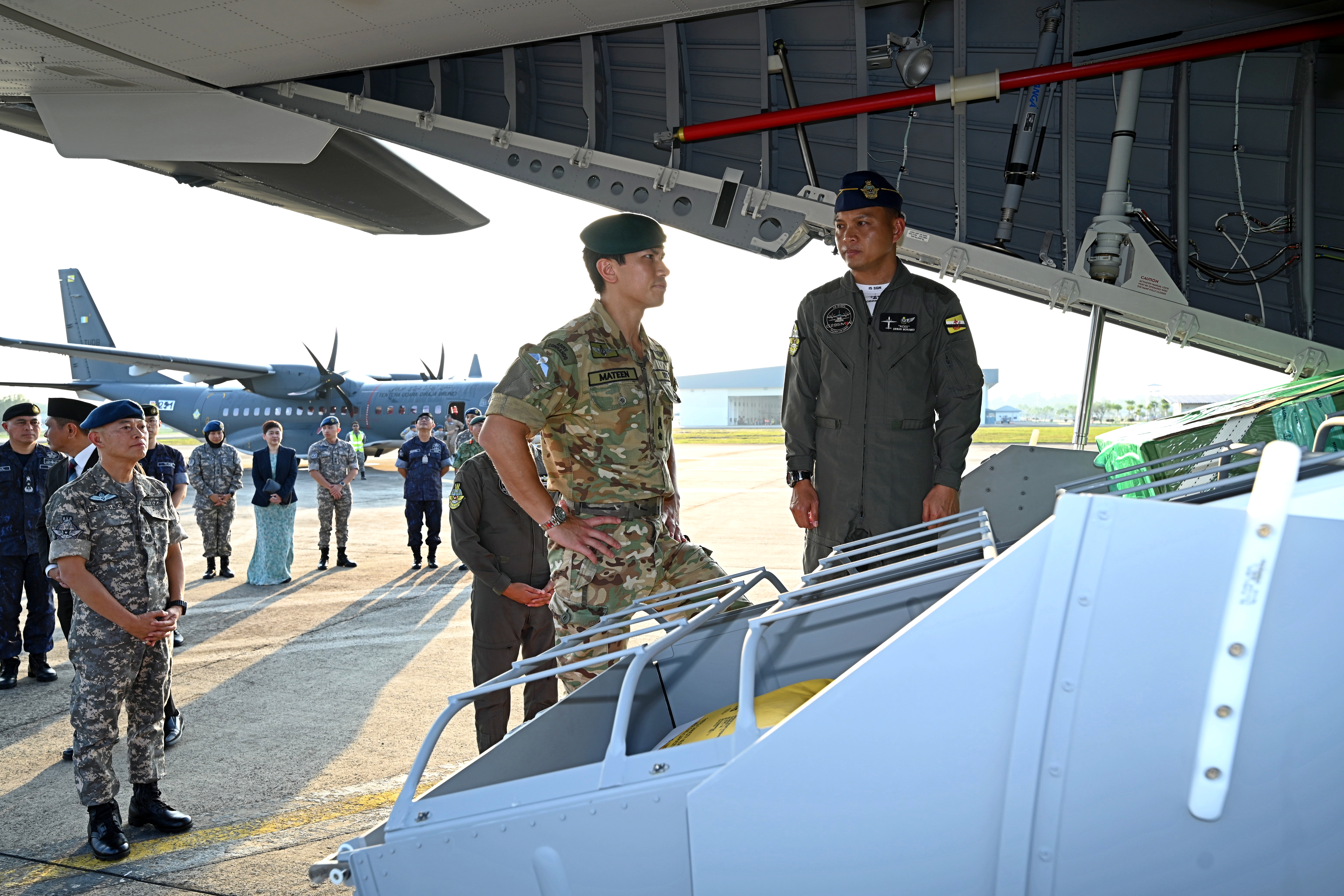 PANGKALAN TENTERA UDARA RIMBA, Isnin, 20 April 2026 – Duli Yang Teramat Mulia Paduka Seri 920 Leftenan Kolonel (Udara) Pengiran Muda 'Abdul Mateen ibni Kebawah Duli Yang Maha Mulia Paduka Seri Baginda Sultan Haji Hassanal Bolkiah Mu'izzaddin Waddaulah berkenan berangkat menyempurnakan Upacara Ketibaan bagi dua buah pesawat terakhir Airbus C295MW Tentera Udara Diraja Brunei (TUDB). Majlis yang berlangsung di Pangkalan Tentera Udara Rimba tersebut menandakan penyempurnaan rasmi perolehan pesawat angkut C295MW.