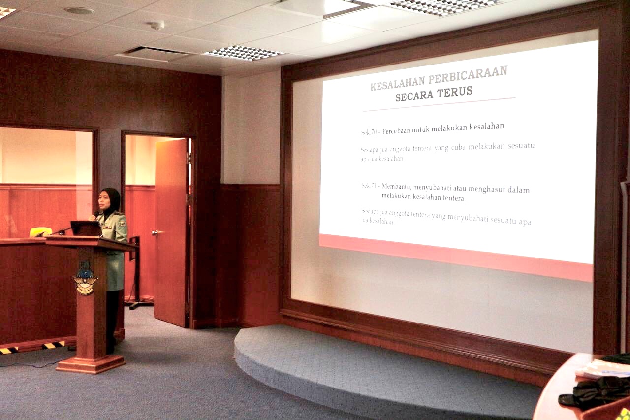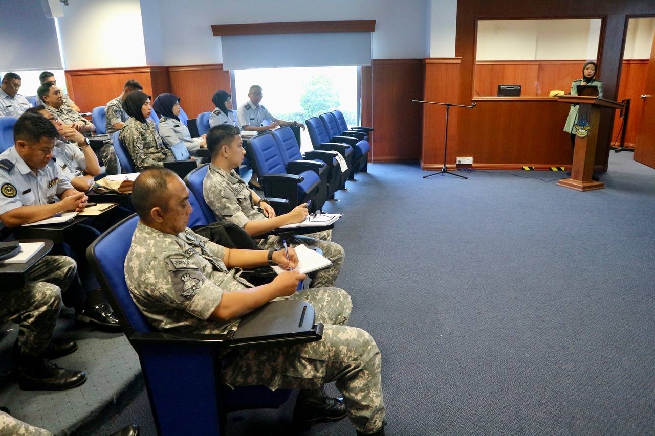 The workshop commenced with welcoming remarks from Captain (U) Pengiran Mohammad Hassanal Arif bin Pengiran Haji Ali Sham, Staff Officer Grade 3 (Administration), RBAirF Headquarters, followed by a session from Captain Adibah binti Haji Mohamed, Military Legal Officer (Operation) Ministry of Defence.